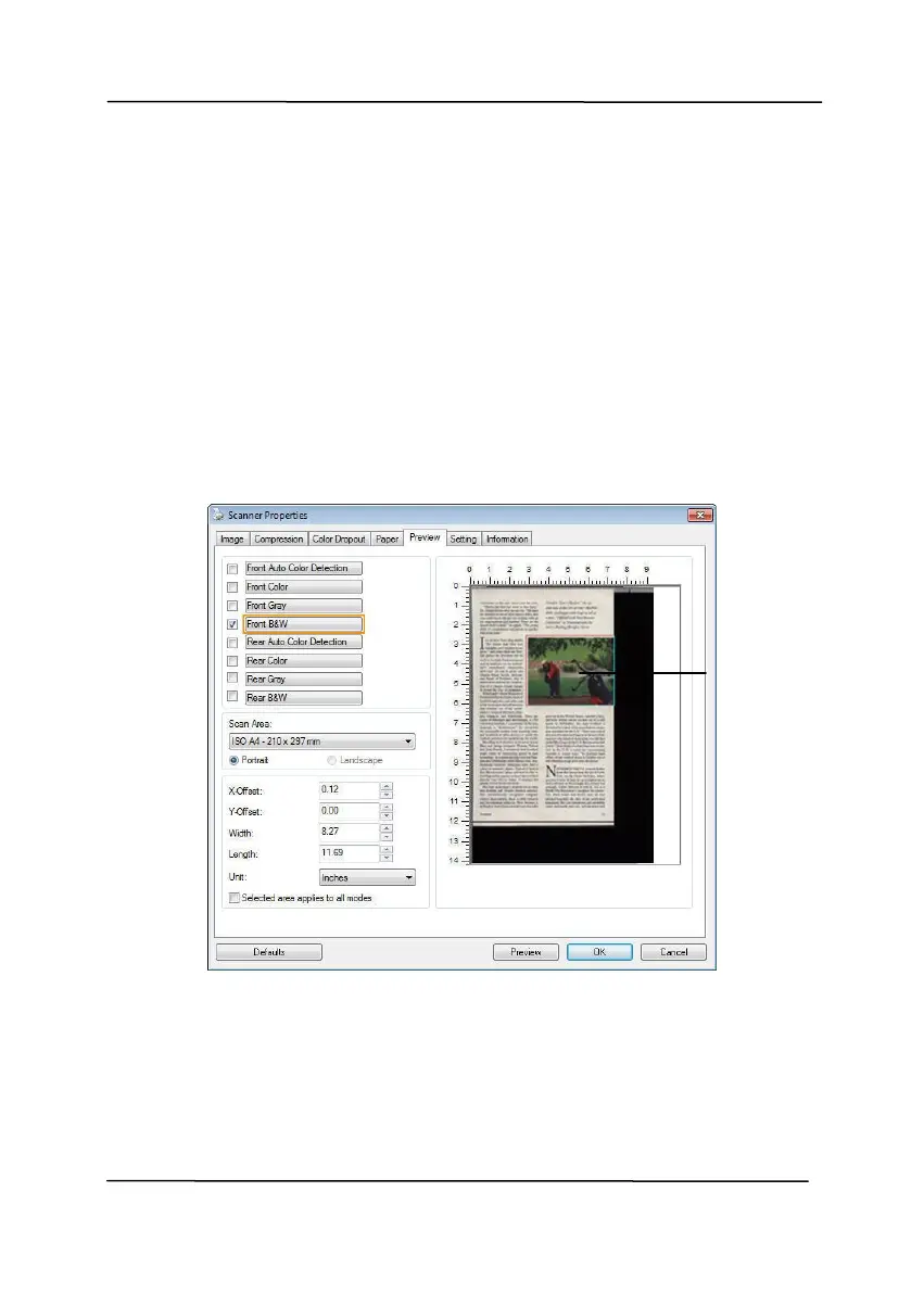 then to select a scan area on the Preview tab is not allowed.