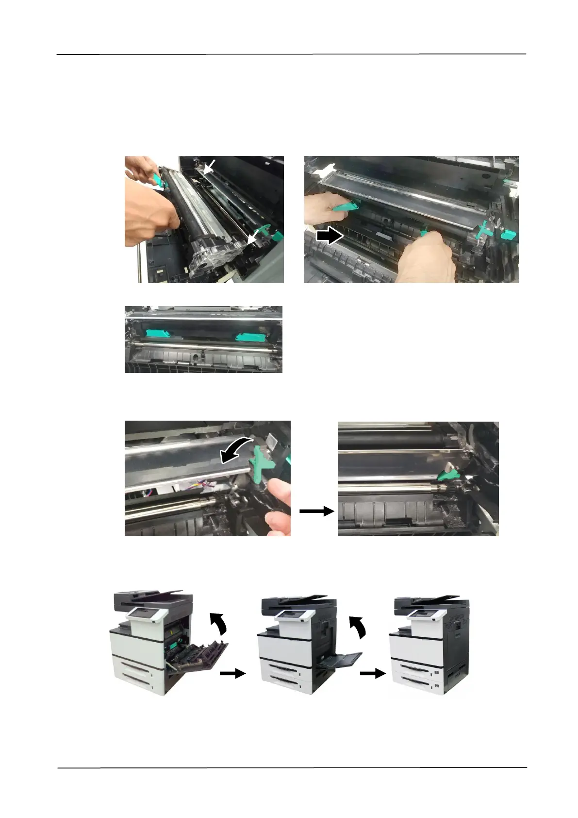 7. Pull down the latch of the paper guide counterclockwise to restore the latch of the