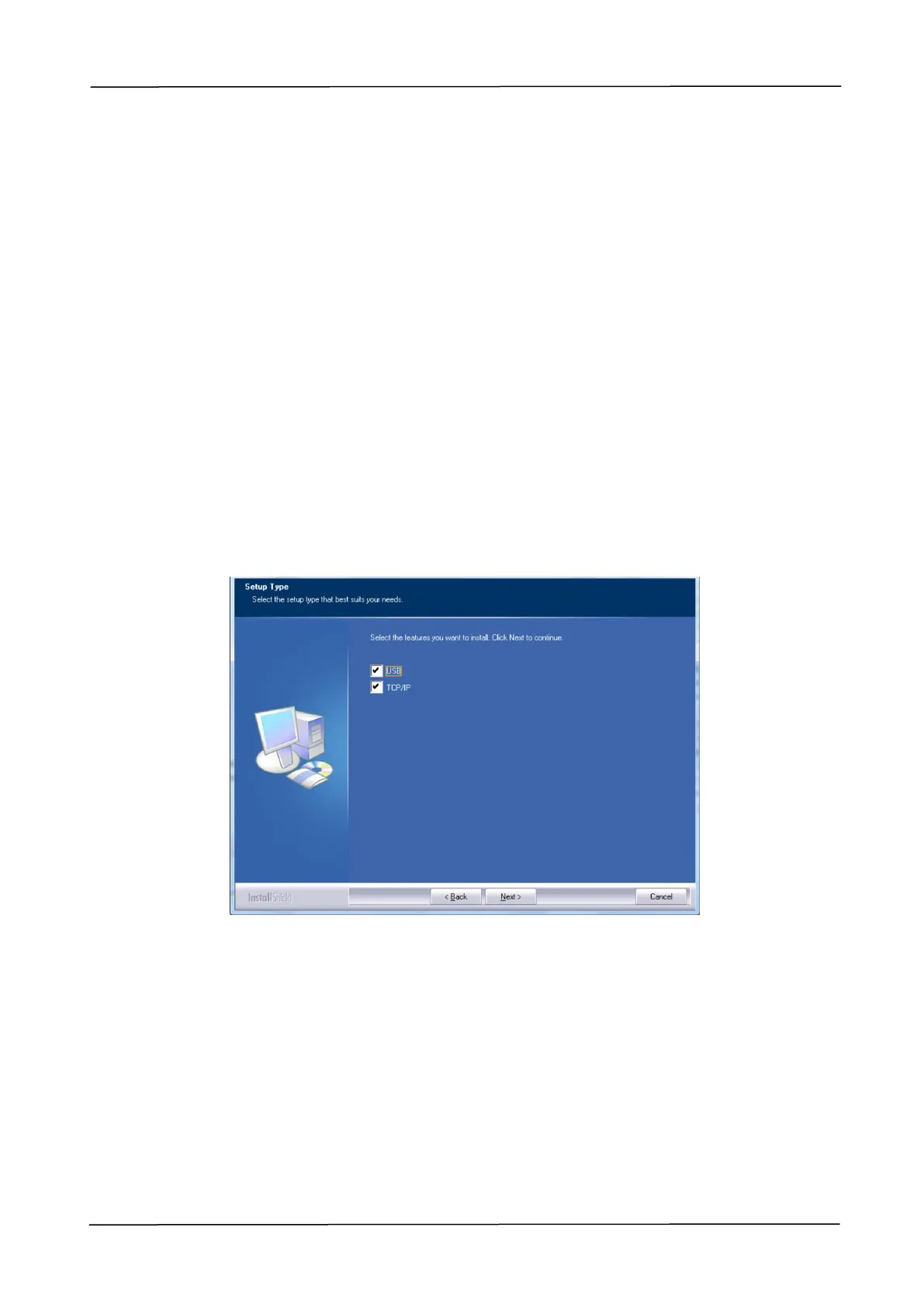 3. When the Setup Type dialog box appears, check [TCP/IP] and click [Next]