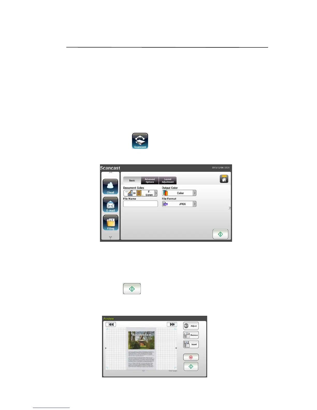 The Scancast (Scan and broadcast) feature allows you to scan a document first