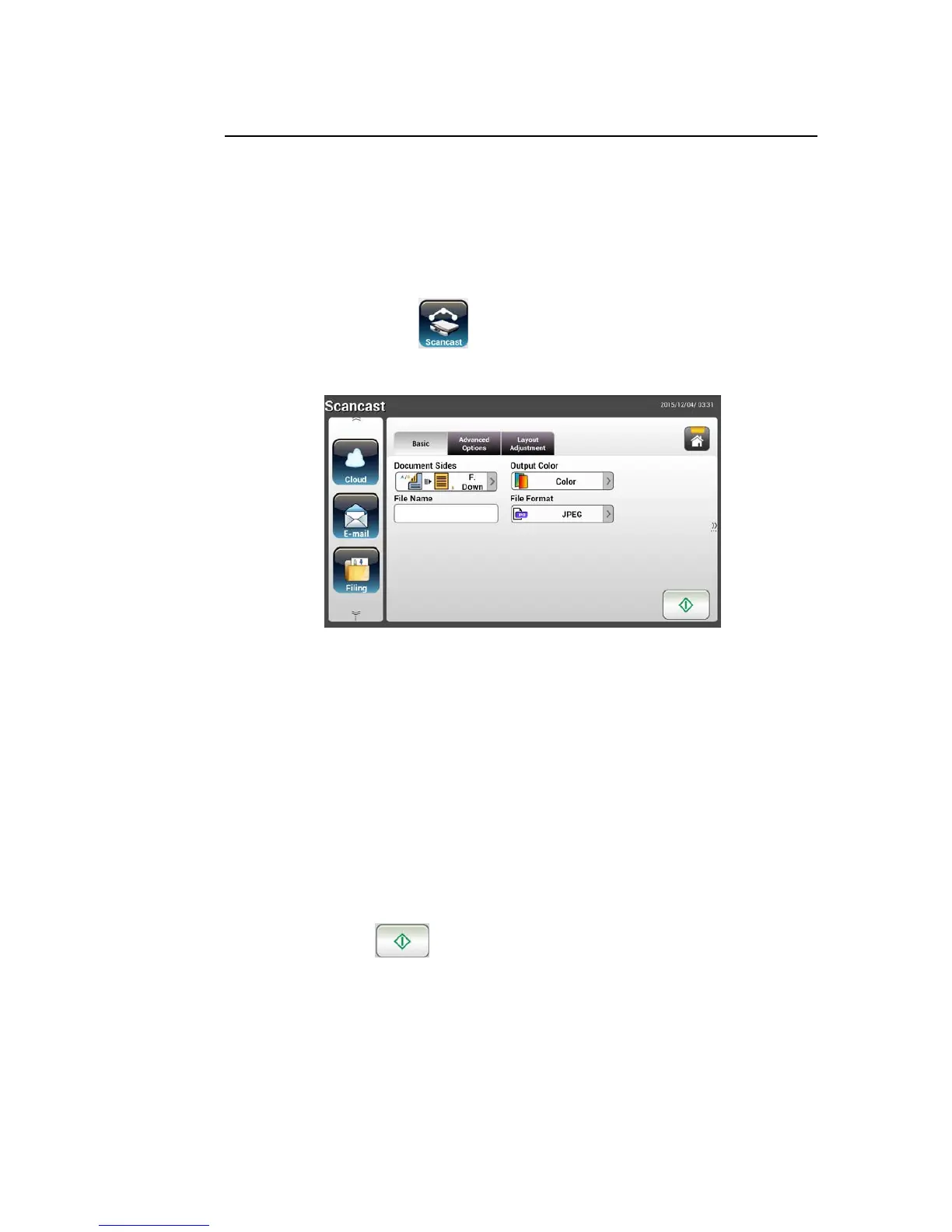 2. Press the Scancast button on the touch screen. The LCD Touch