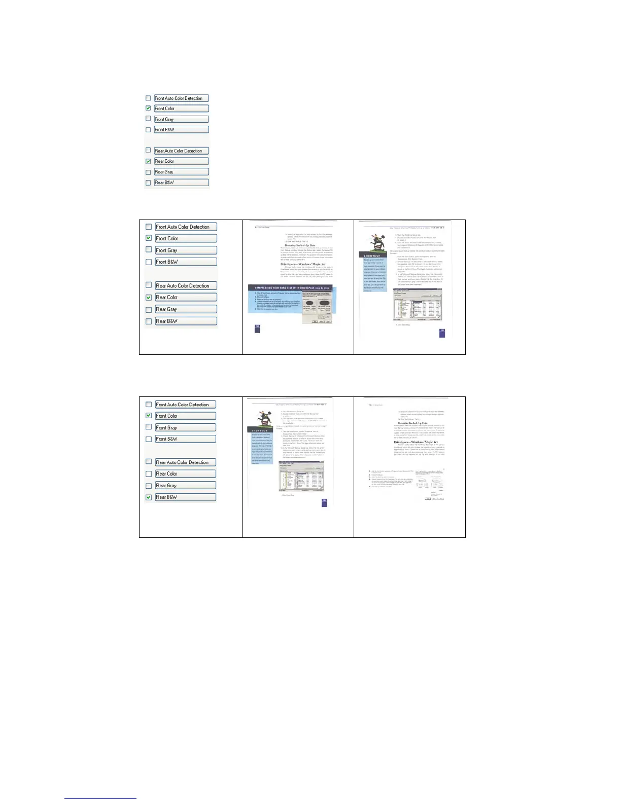 Example 2:Scanning a two-sided color document, one in B&W, the other