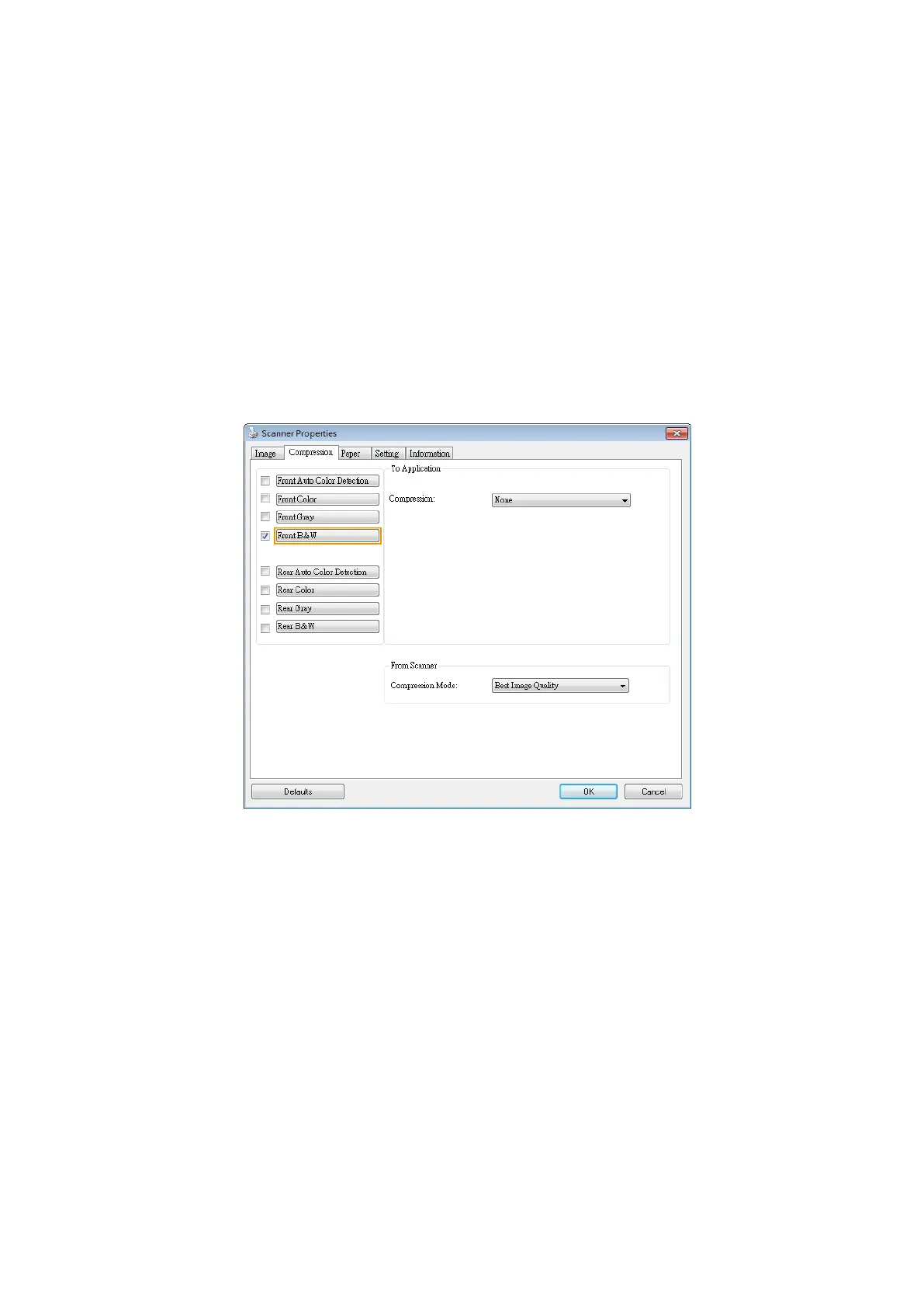 Choose if you wish to compress the scanned image and transfer it from the scanner