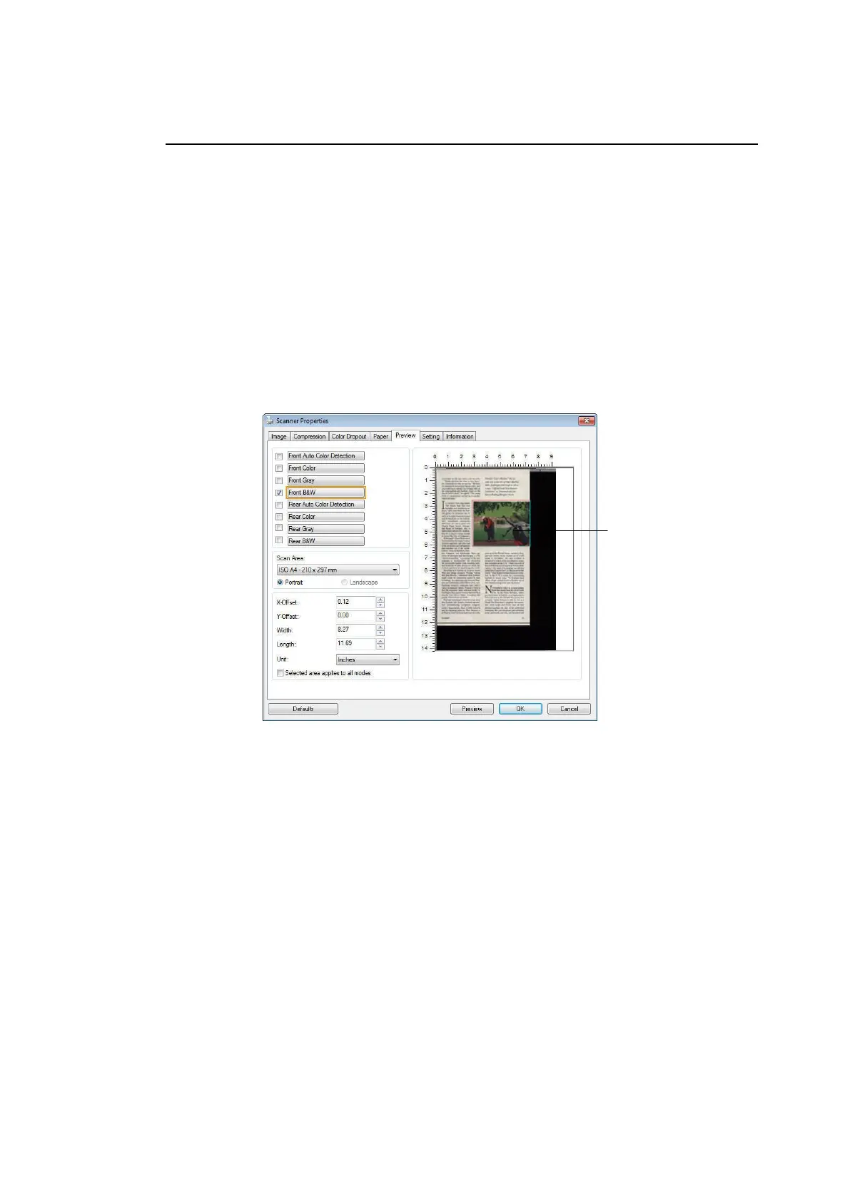 your scan area by the “Scan Area” drop down list box or placing your cursor on the