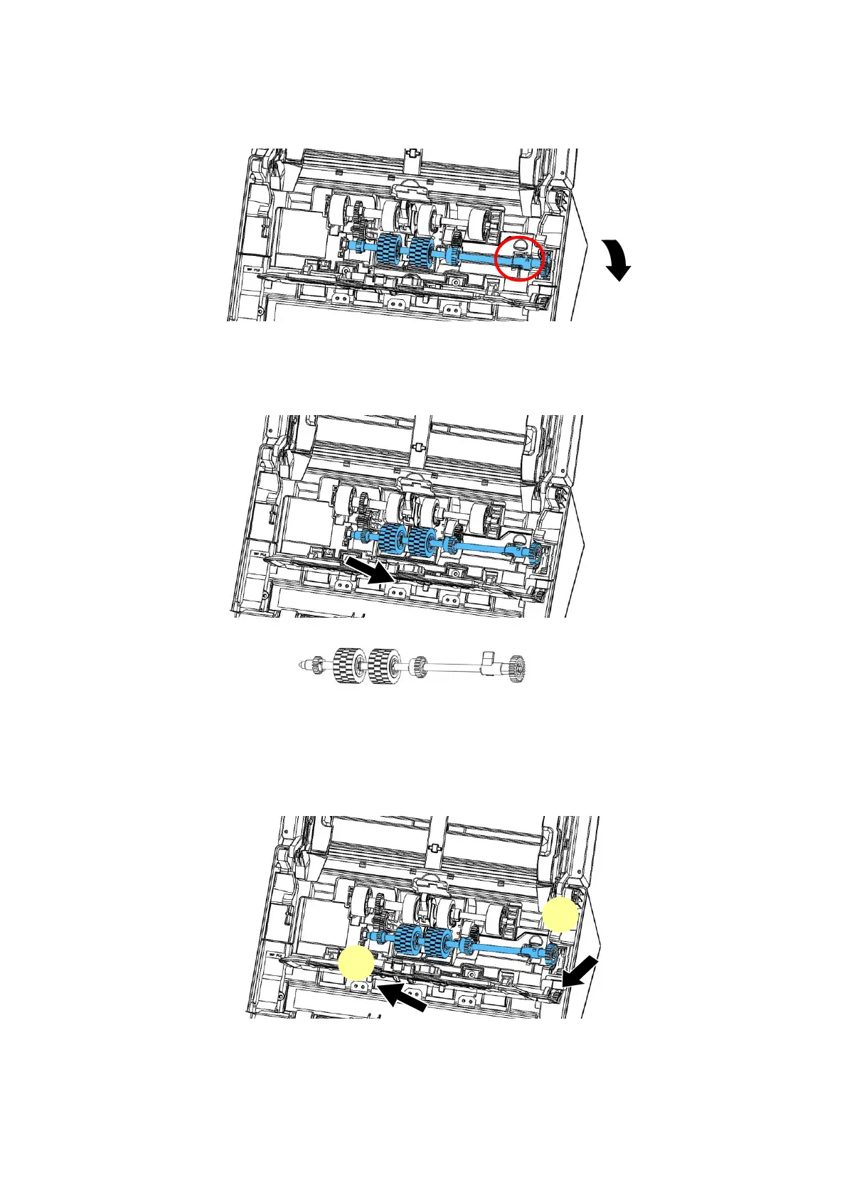 1. Insert the left end of the ADF roller first to its slot and place the ADF roller to