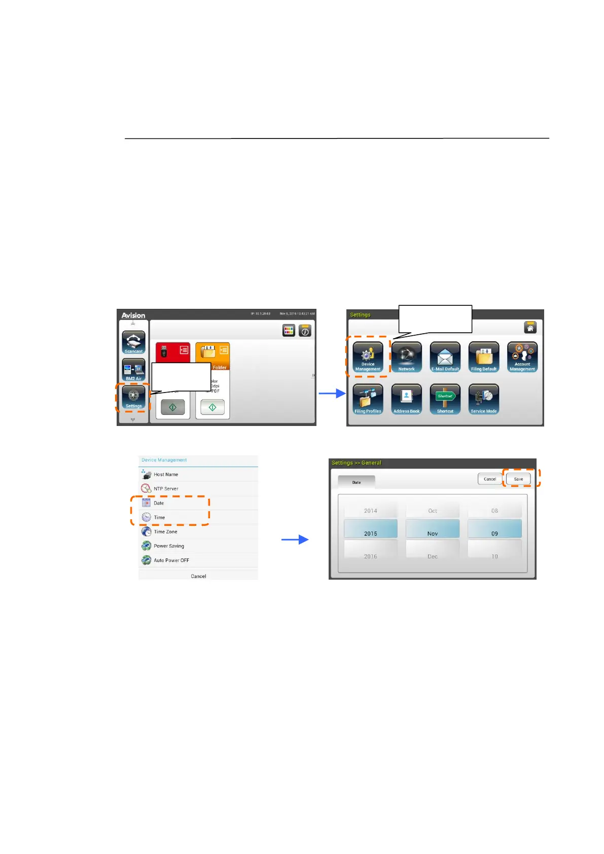 3. On the [Device Management] screen, tap [Time] to set your current time.