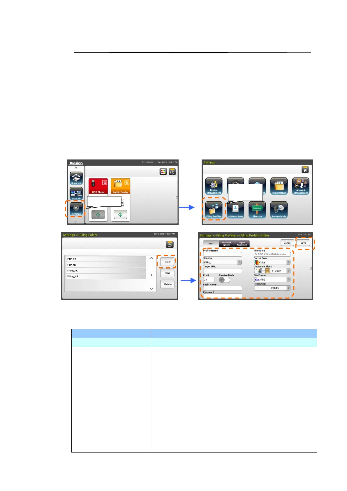 2. Refer to the following table to create your Filing Profiles. Tap [Save] after