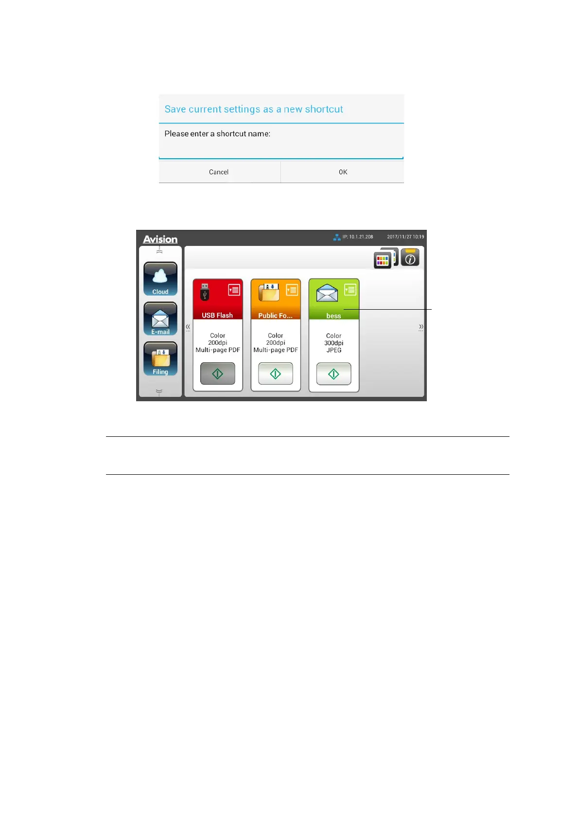 shortcut button will be displayed on the LCD Touch Panel.
