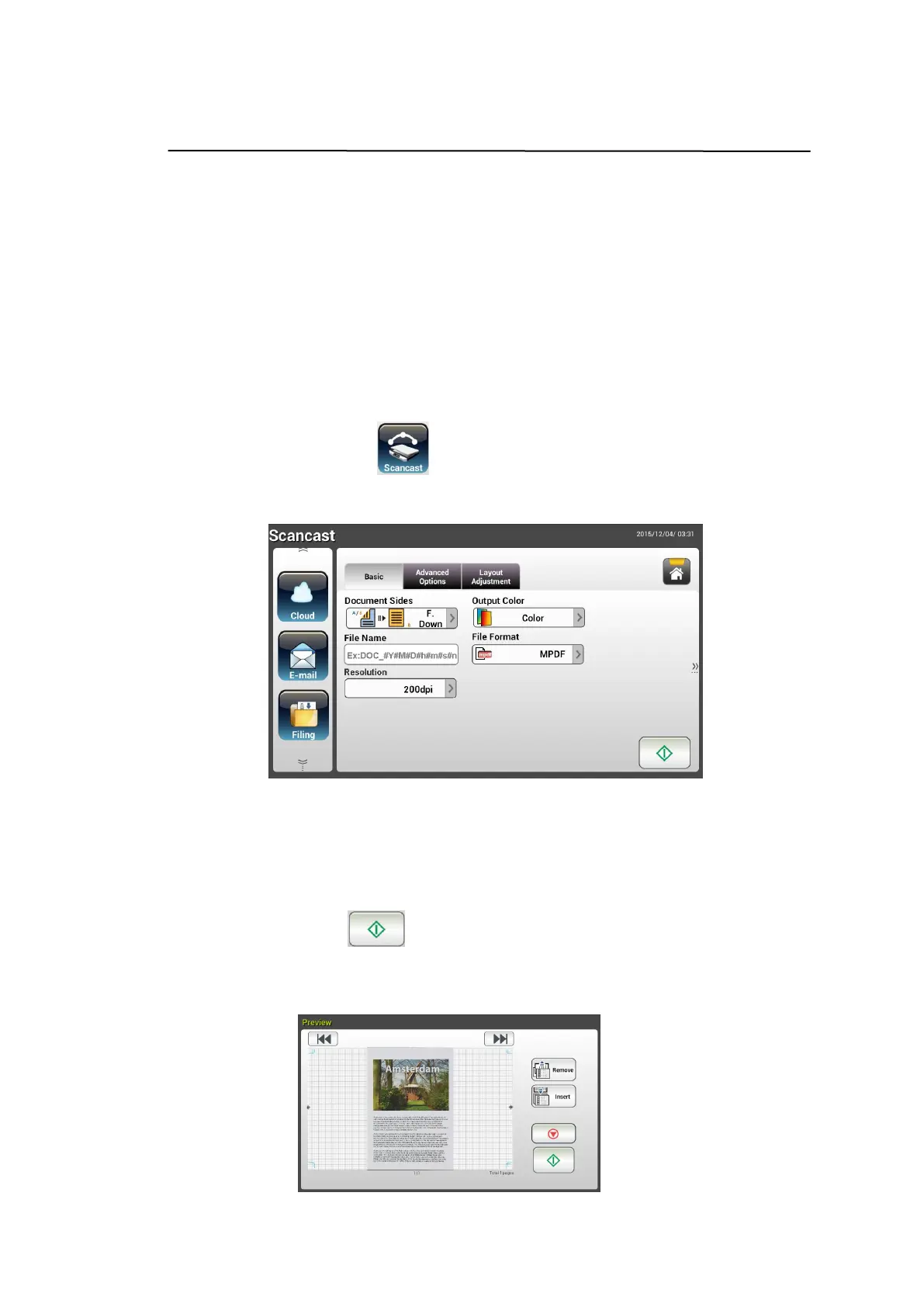 The Scancast (Scan and broadcast) feature allows you to scan a document first
