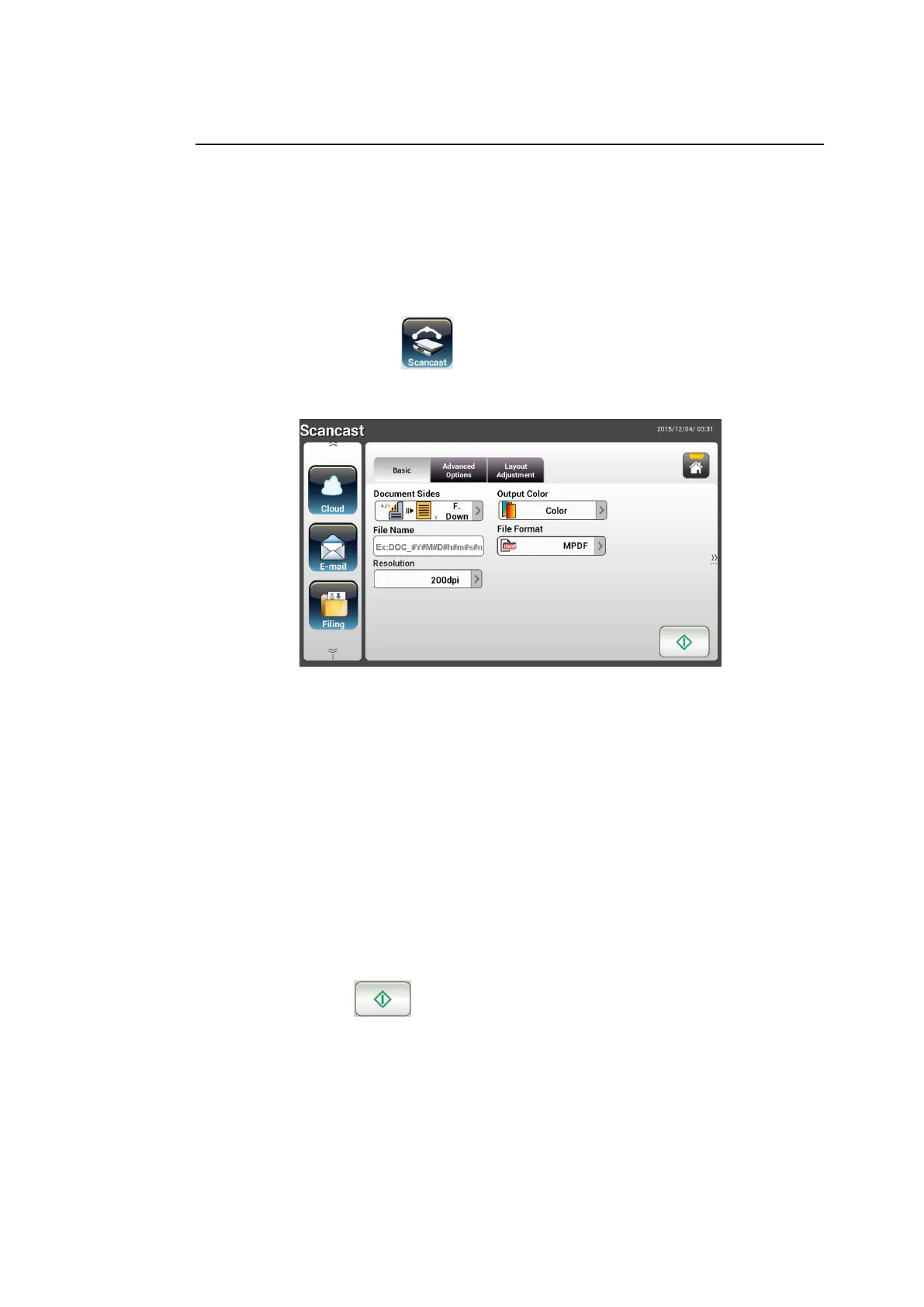 2. Press the Scancast button on the touch screen. The LCD Touch