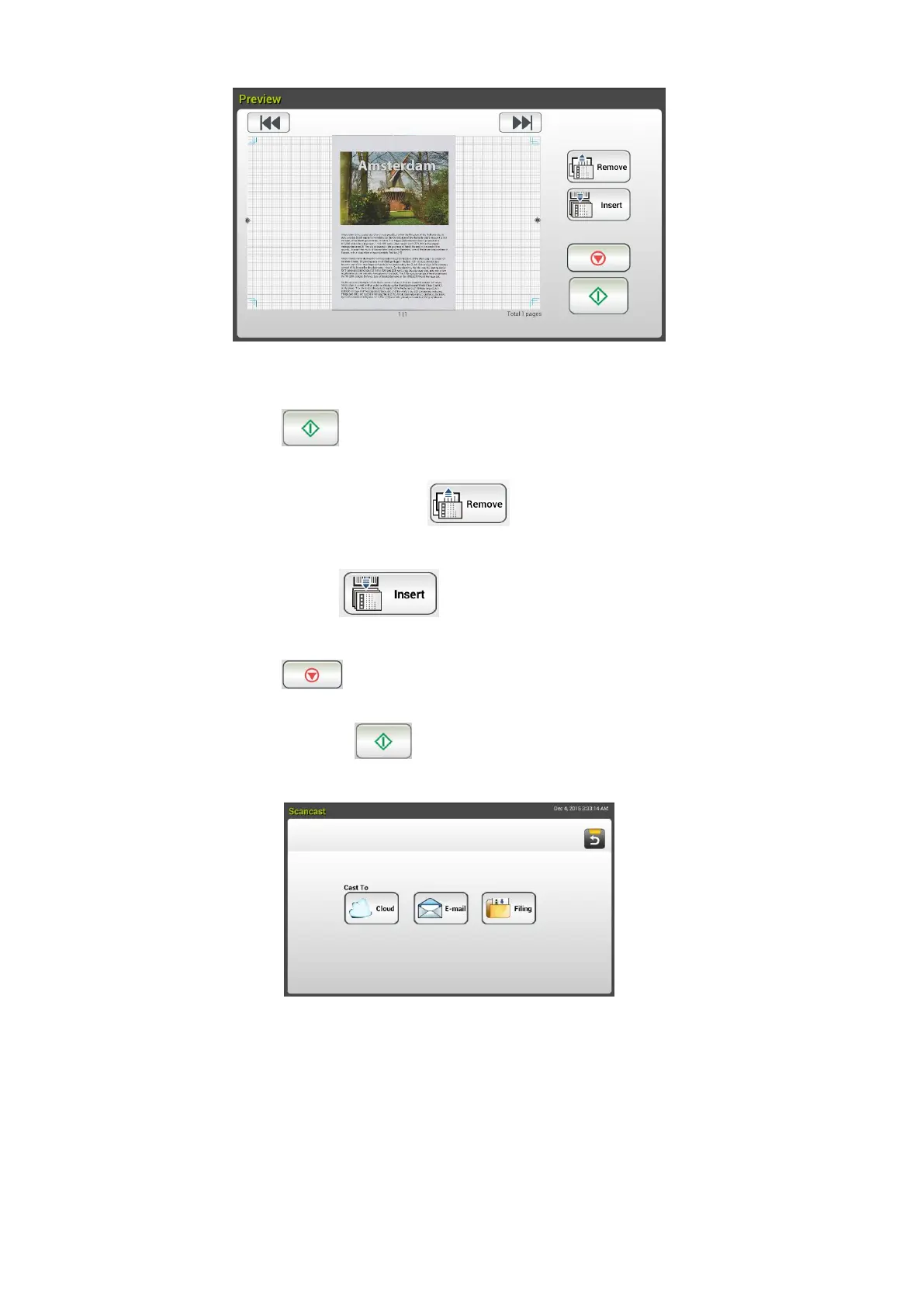 9. If the [Start] ( ) button has been selected, the [Scancast]