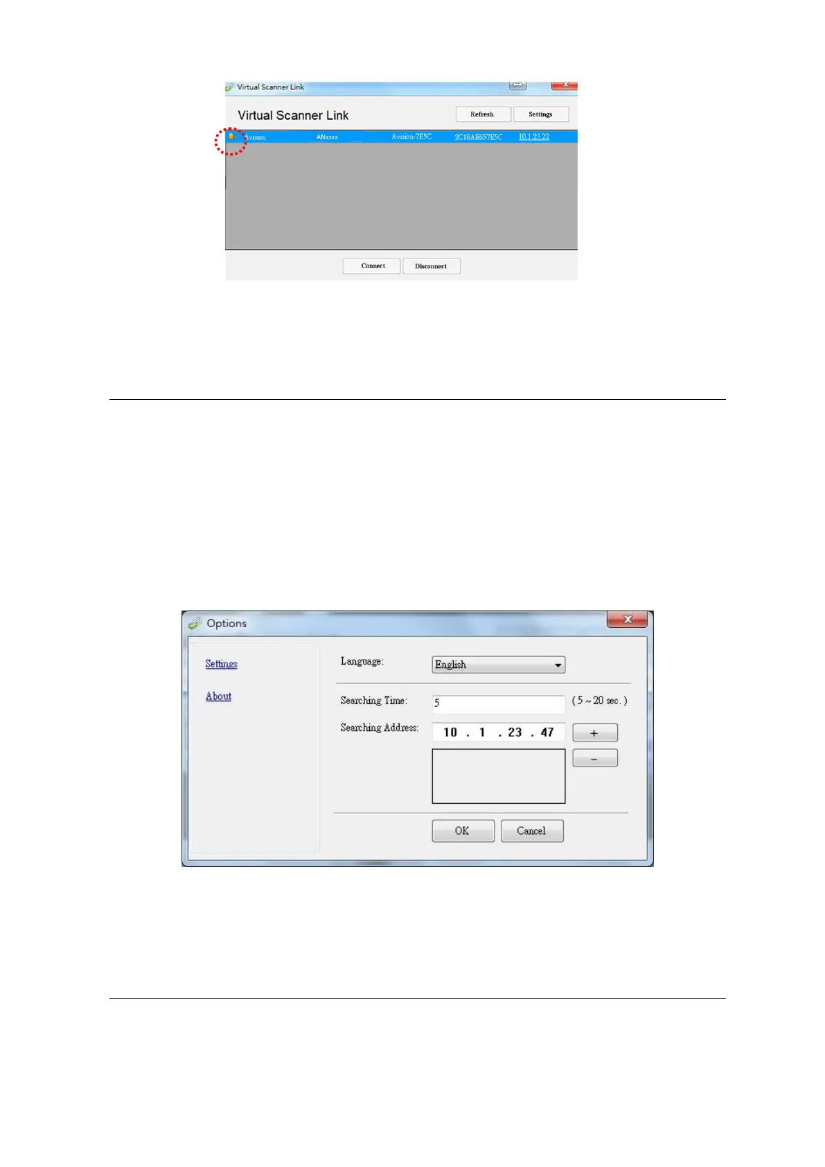 address of the scanner to let [Virtual Scanner Link] automatically search the