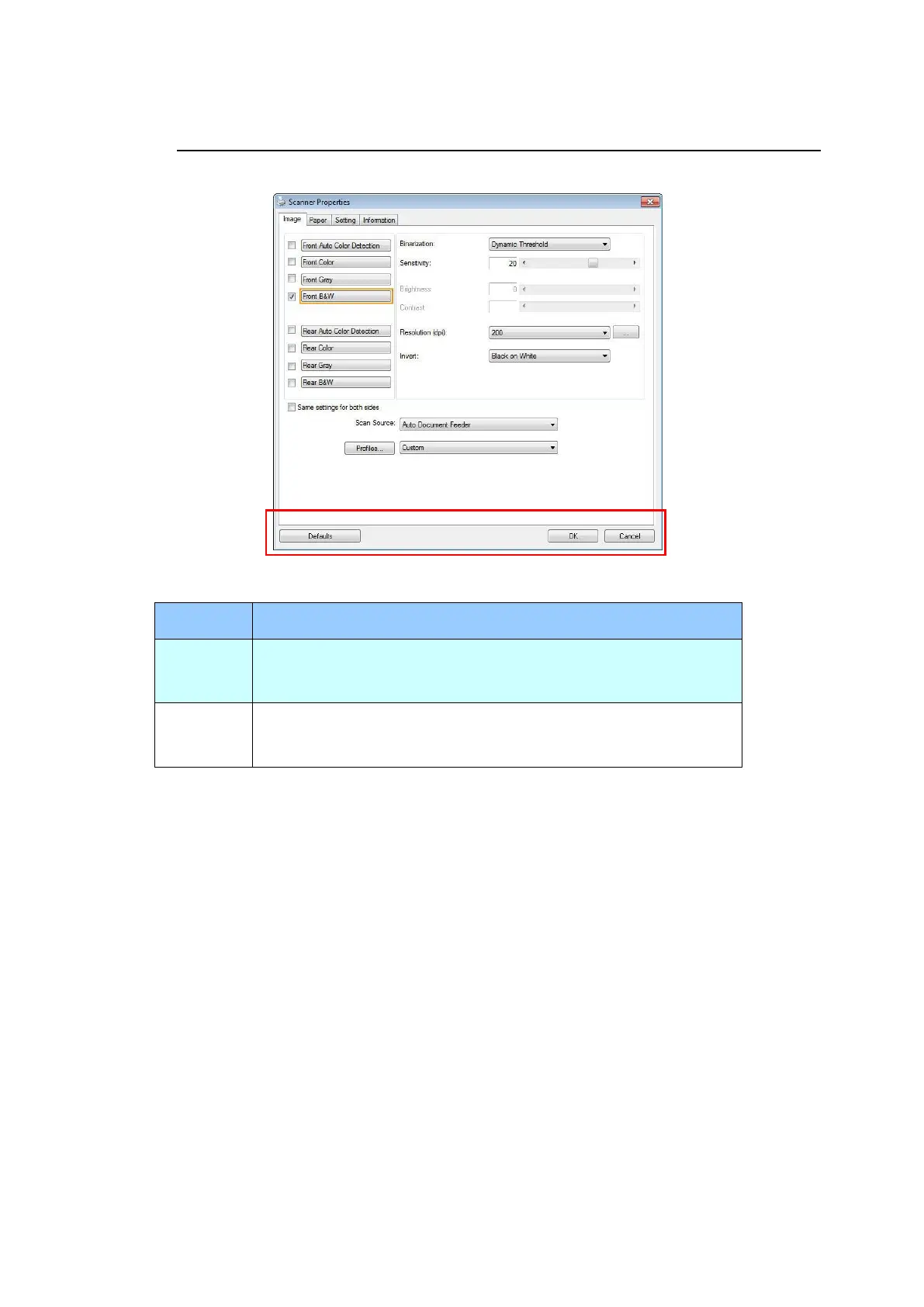 Avision AN360W - Buttons on the Scanner Properties Dialog Box