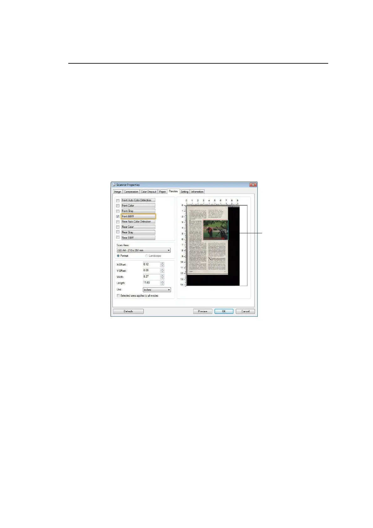 your scan area by the “Scan Area” drop down list box or placing your cursor on the
