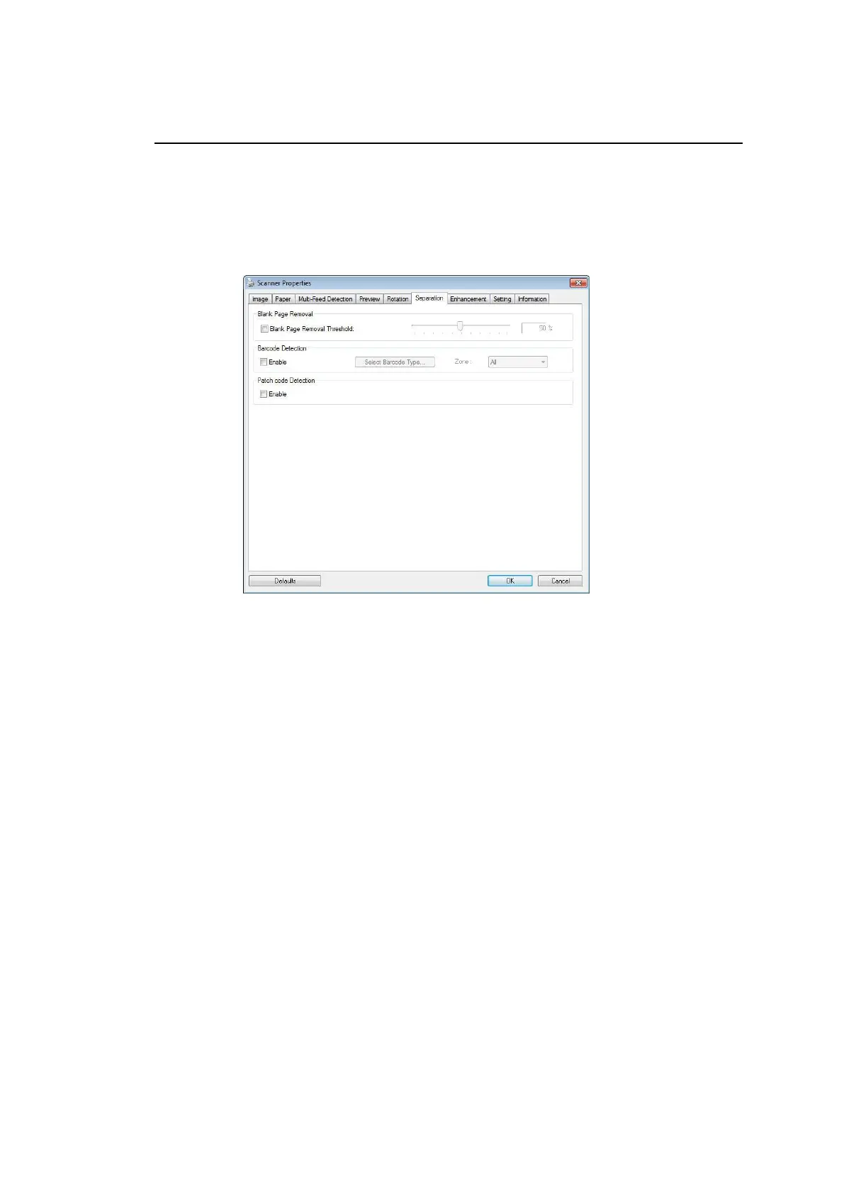 The Separation tab allows you to enable the detection engine to detect the blank
