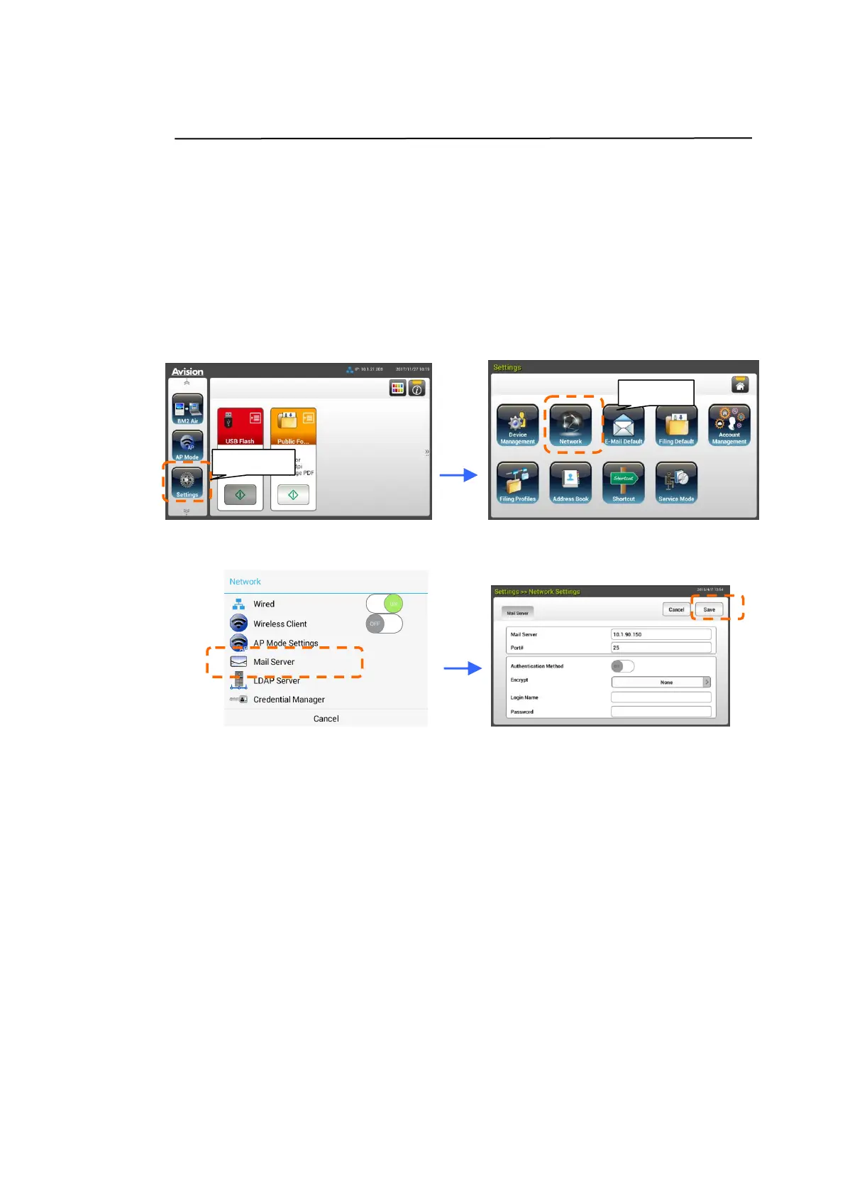 [Settings]>[Network]>[Mail Server] in succession and then set your