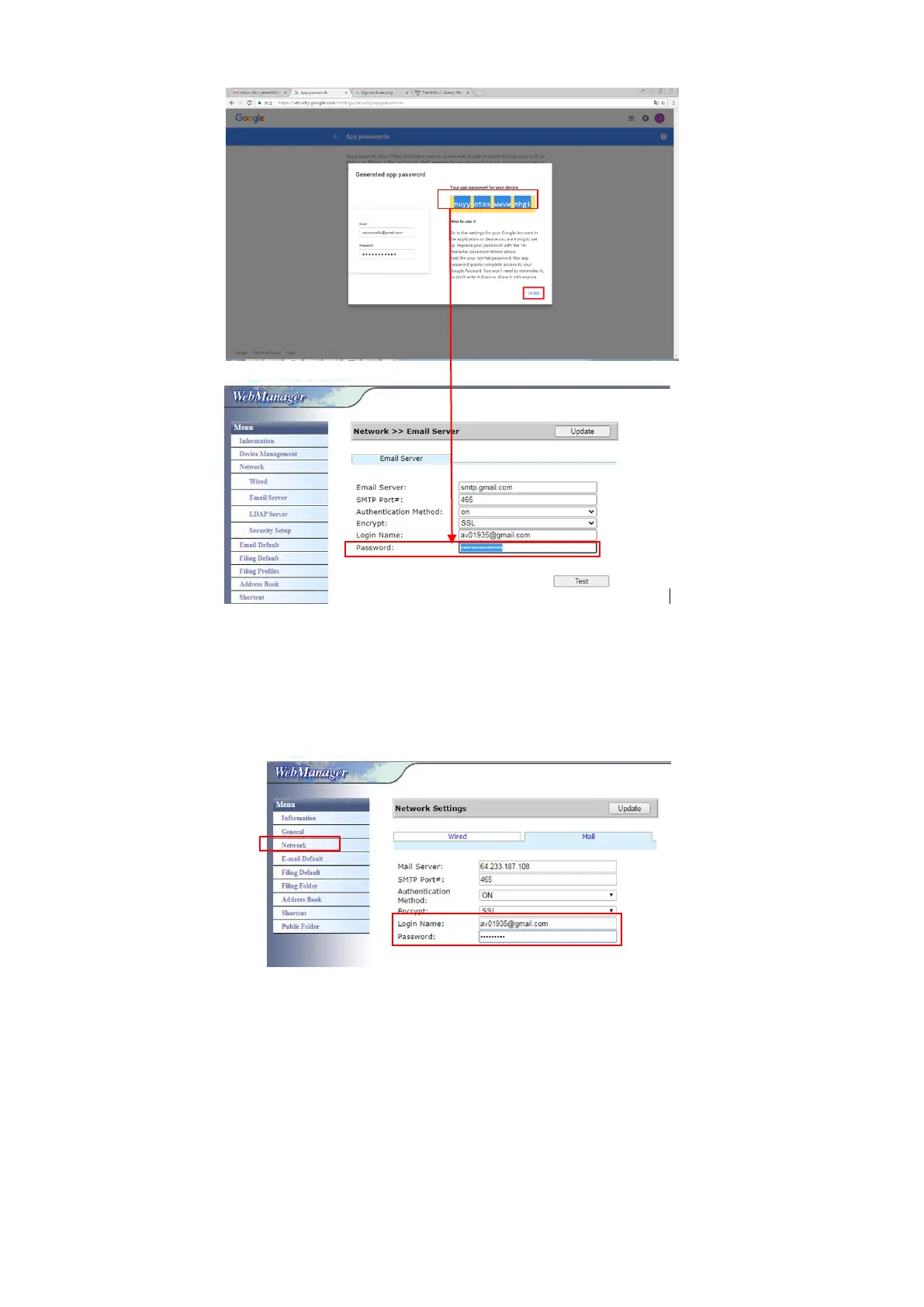 Gmail’s account and password. Be sure to add @gmail.com after the