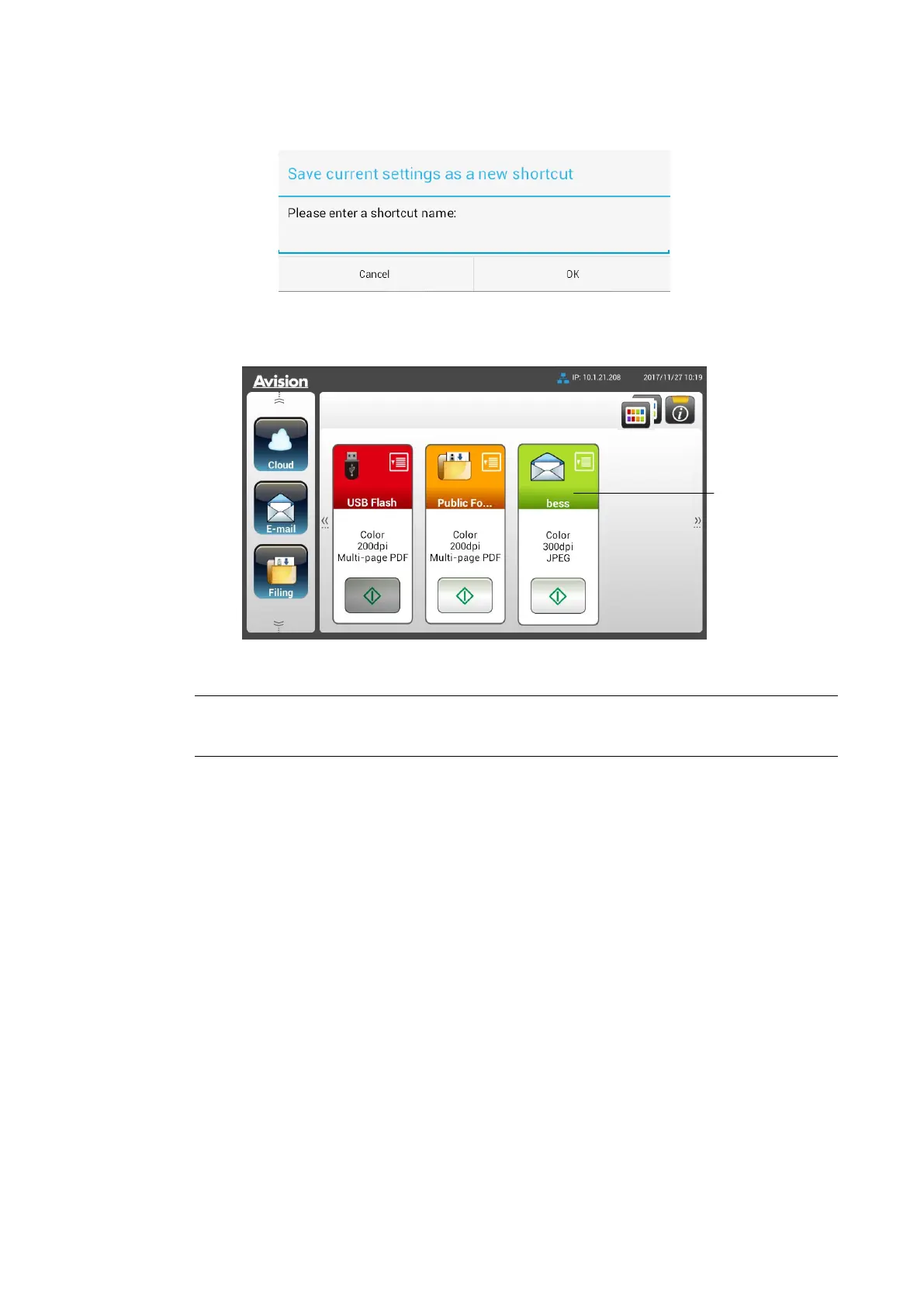 shortcut button will be displayed on the LCD Touch Panel.