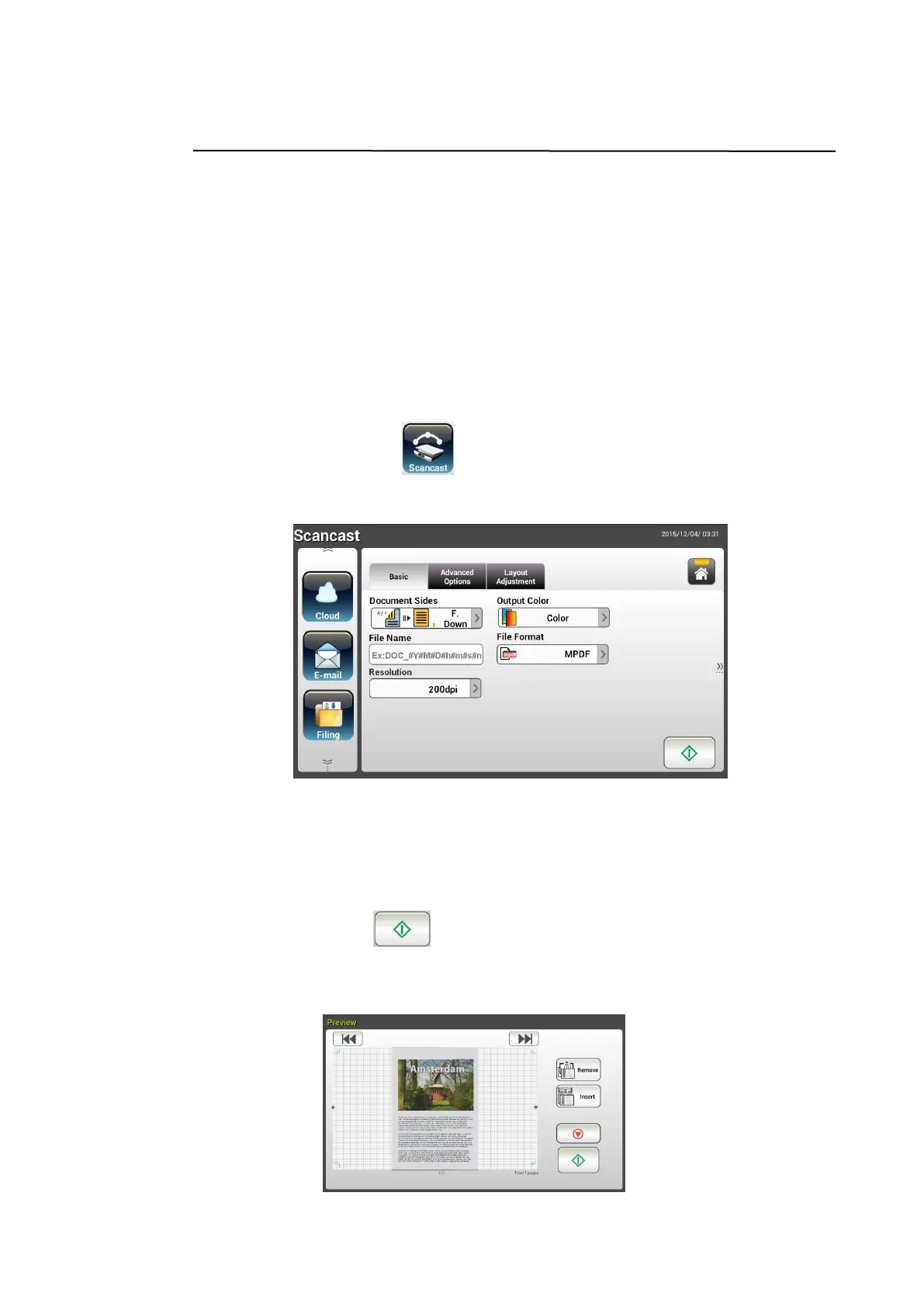 The Scancast (Scan and broadcast) feature allows you to scan a document first