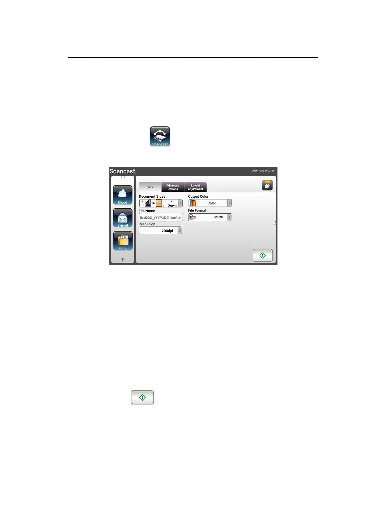 2. Press the Scancast button on the touch screen. The LCD Touch