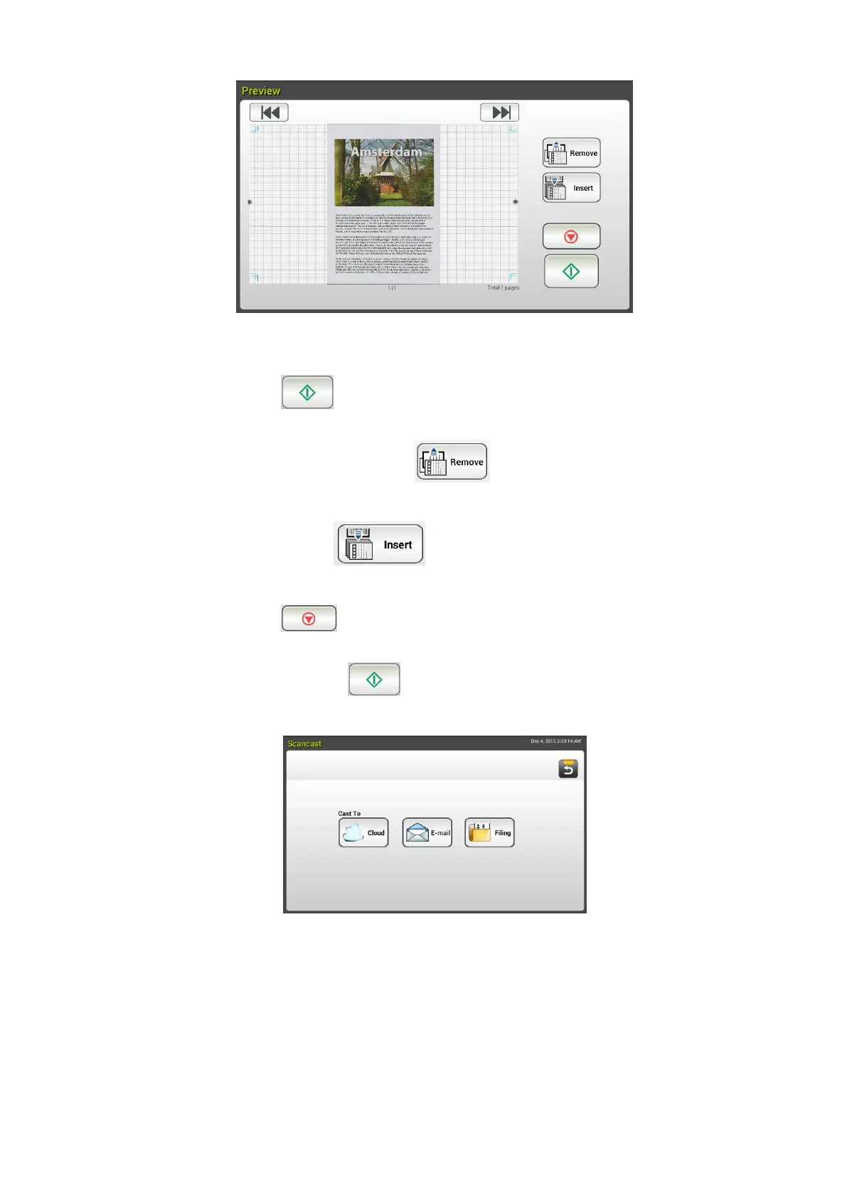 9. If the [Start] ( ) button has been selected, the [Scancast]