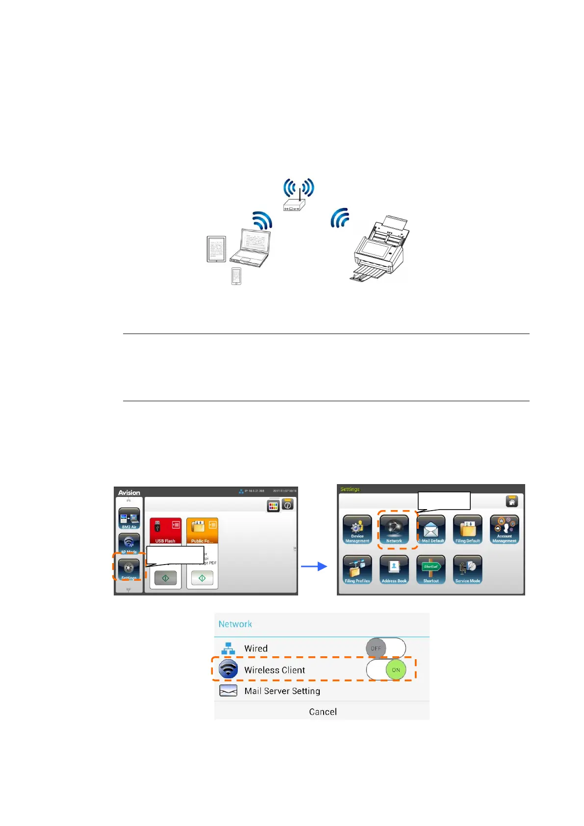 scanner in a wireless network, please first disconnect the Ethernet cable