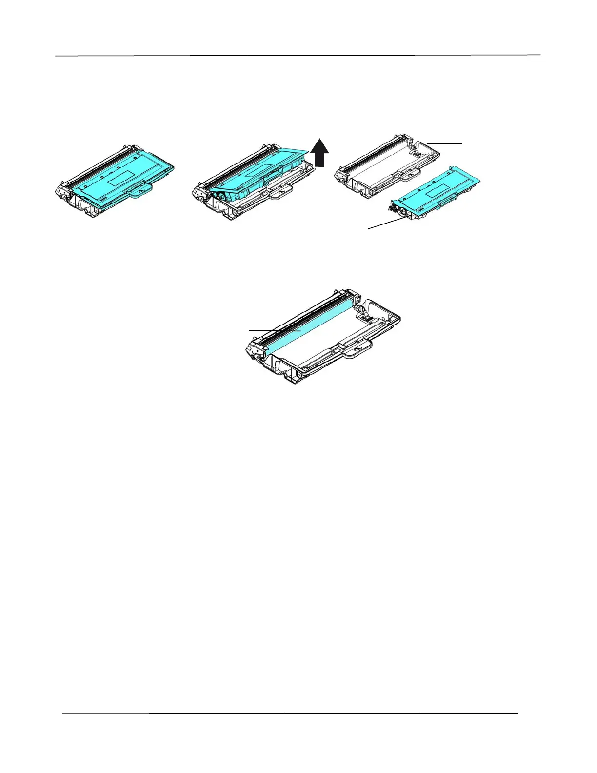 Remove the toner cartridge from the drum unit as shown.