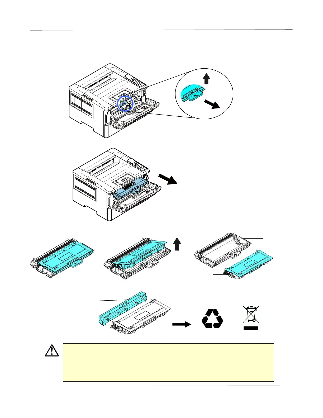 3. Lift the handle of the drum unit and toner cartridge assembly and gently remove