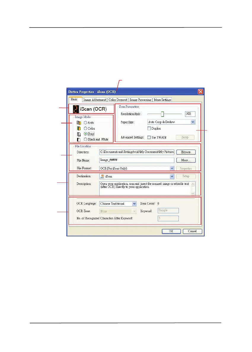 3. The Button Panel shows the first five scanning buttons.