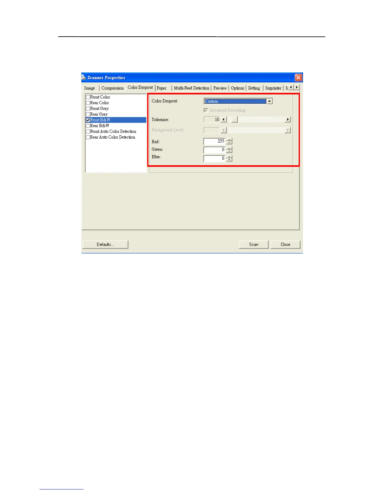 The Color Dropout dialog box