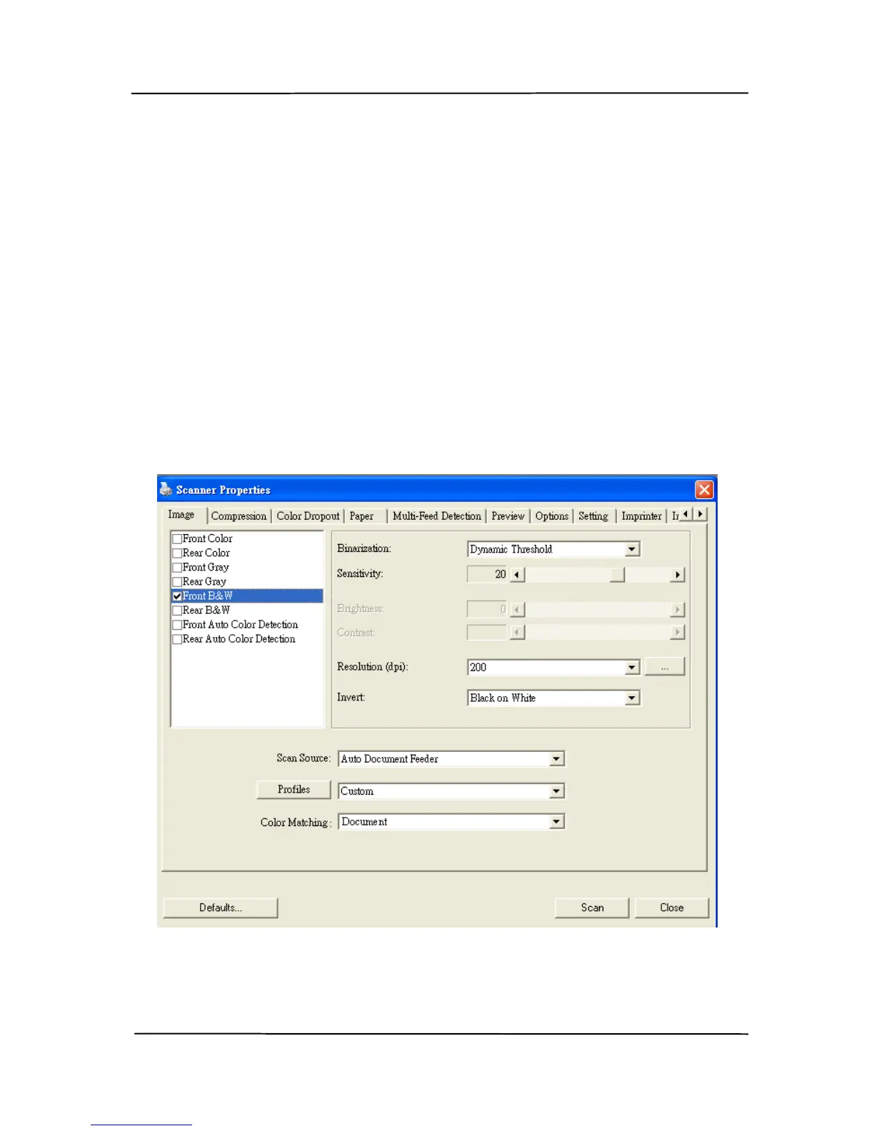 The Scanner Properties dialog box allows you to configure the