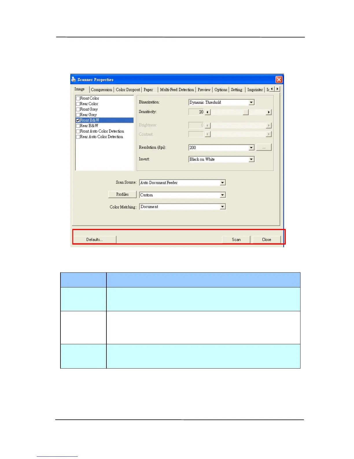 4.1 Buttons on the Scanner Properties Dialog Box