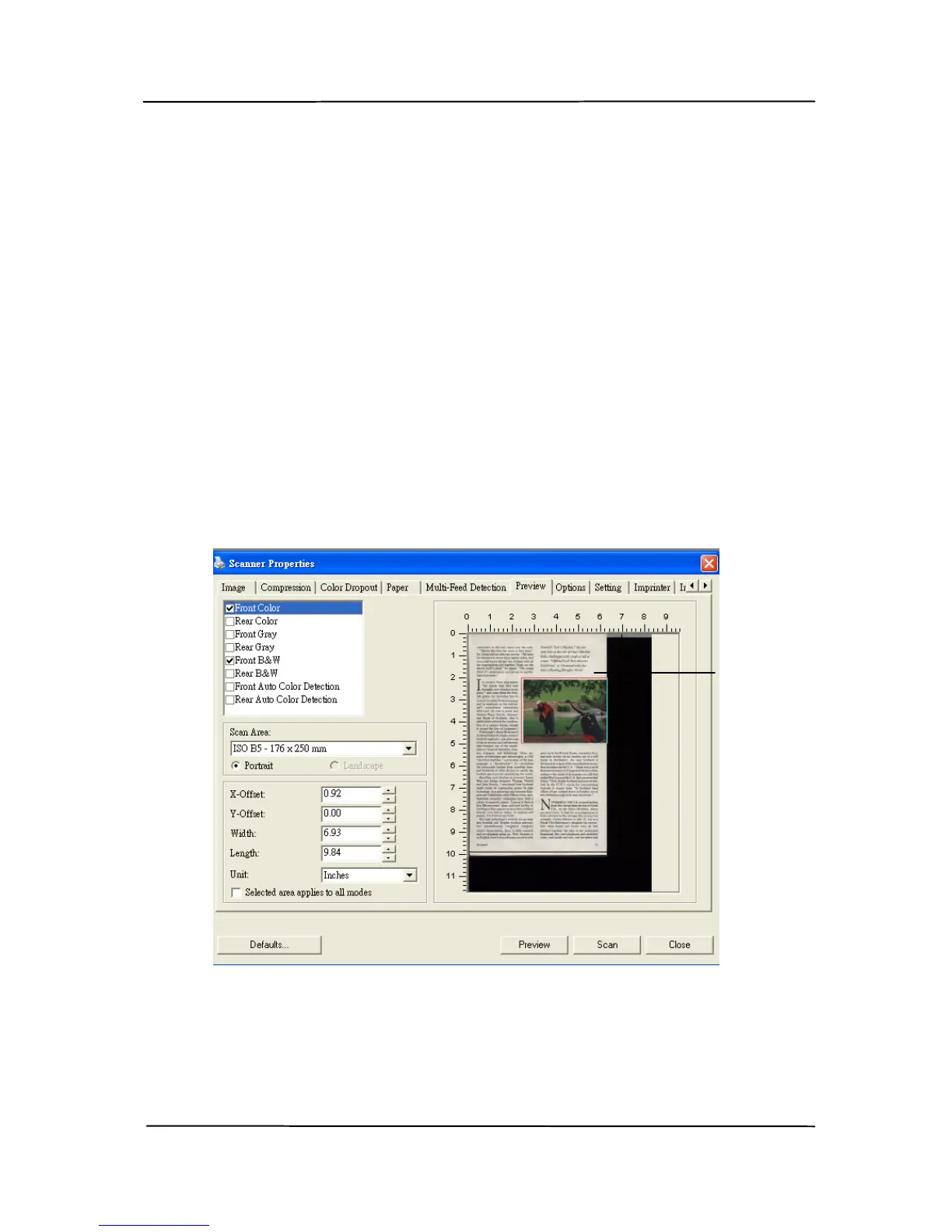 Tab”, then to select a scan area on the Preview tab is not