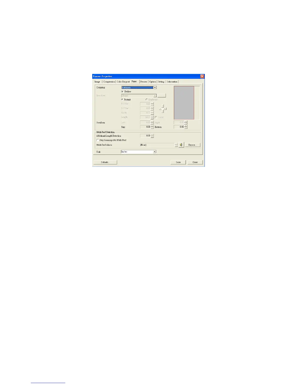 output (i.e., Auto Crop or not, Scan Area, OverScan, Multi-Feed