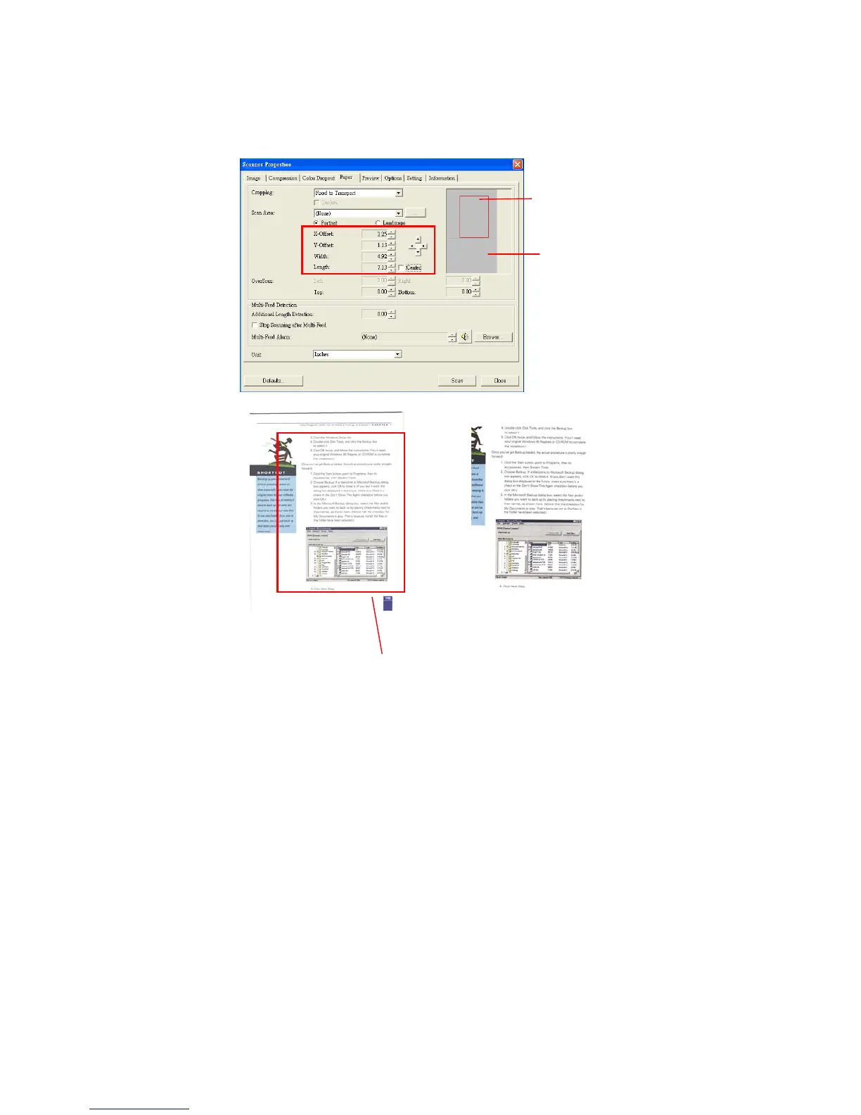 Example Redefine your scan area ( x-offset: 2.25 inchesy-