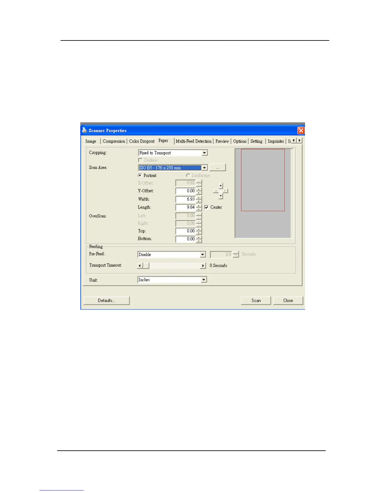 output (i.e., Auto Crop or not, Scan Area, OverScan, Multi-Feed