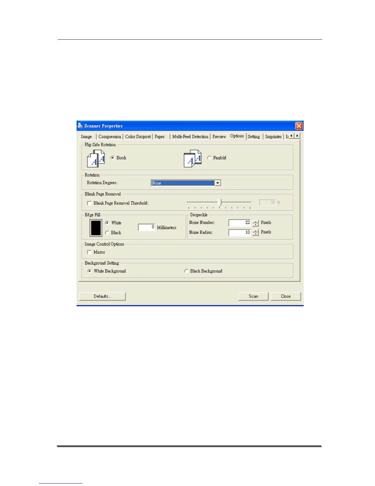 Avision DF-1015S - The Options Tab Settings