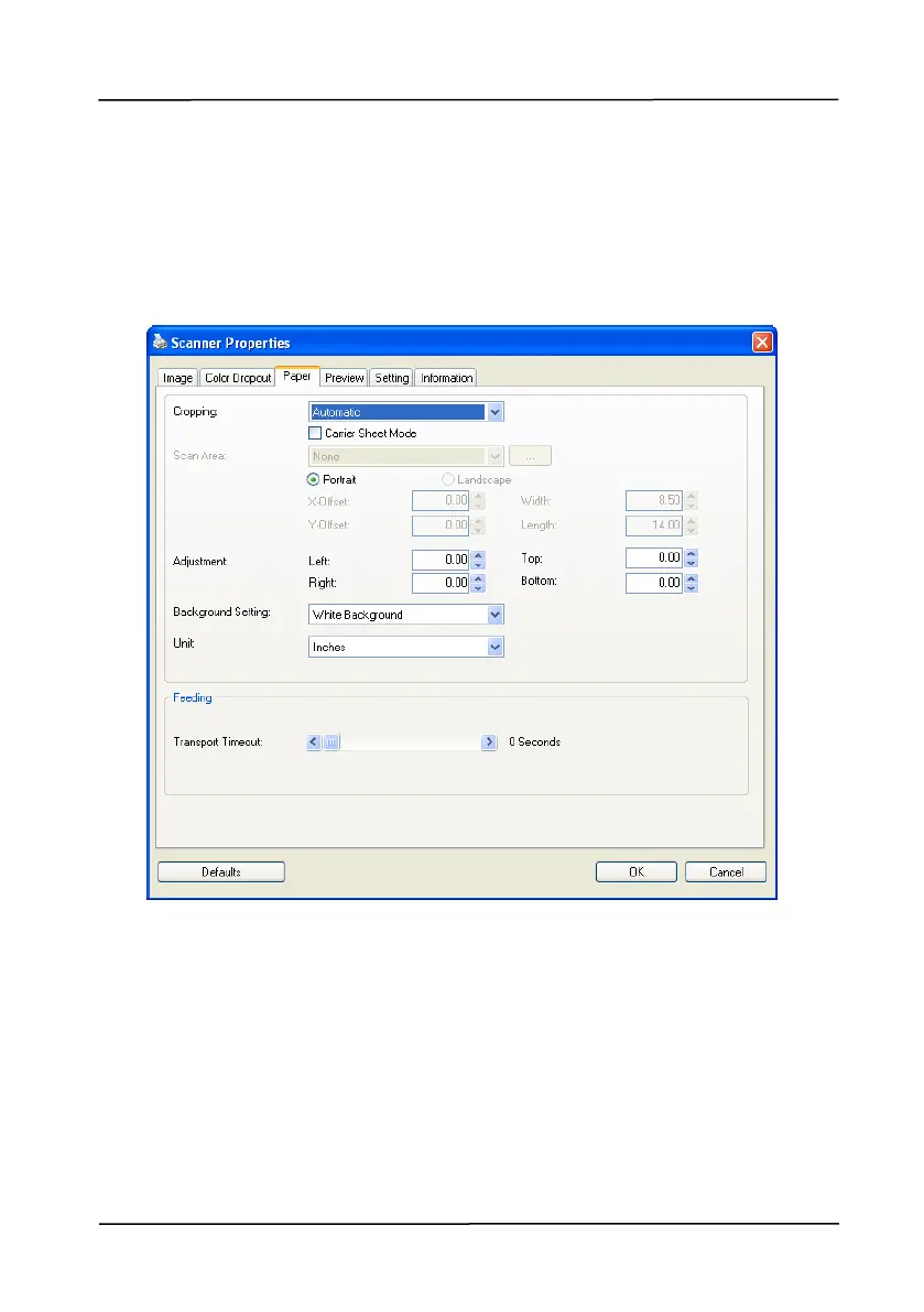 The Paper tab allows you to define values relating to image
