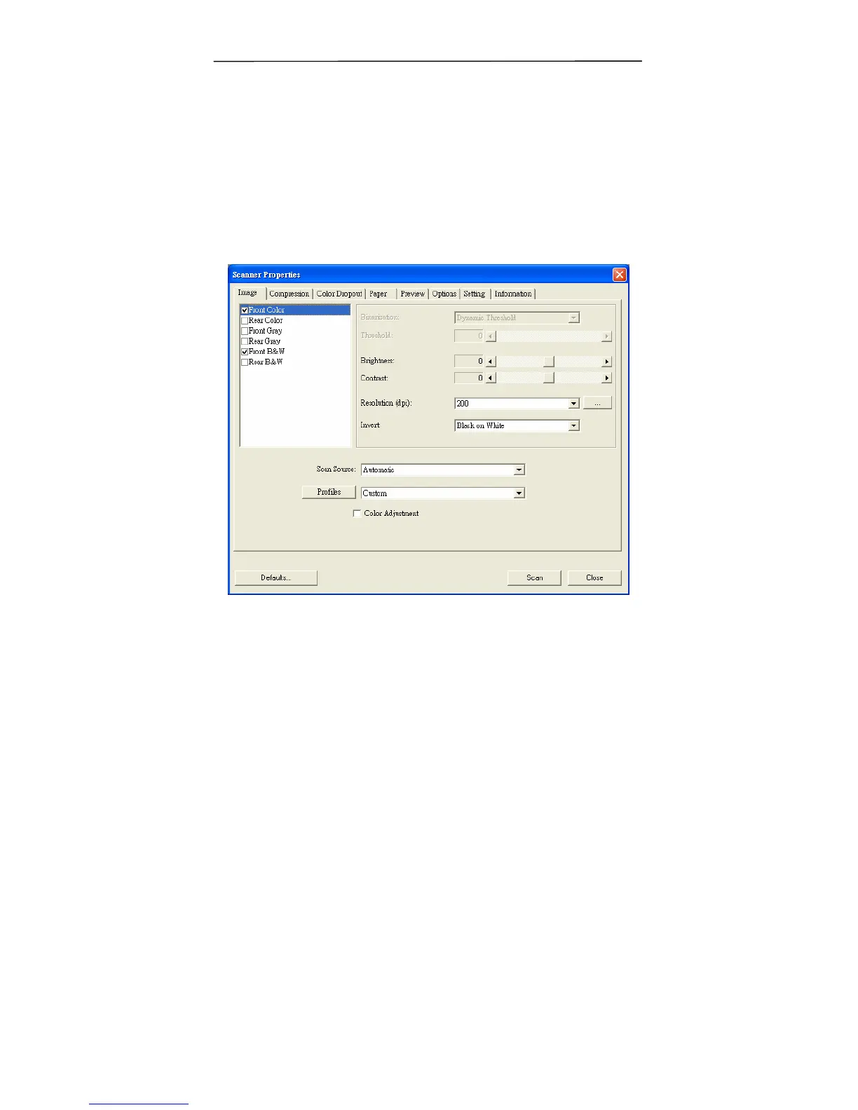 The Scanner Properties dialog box allows you to configure the