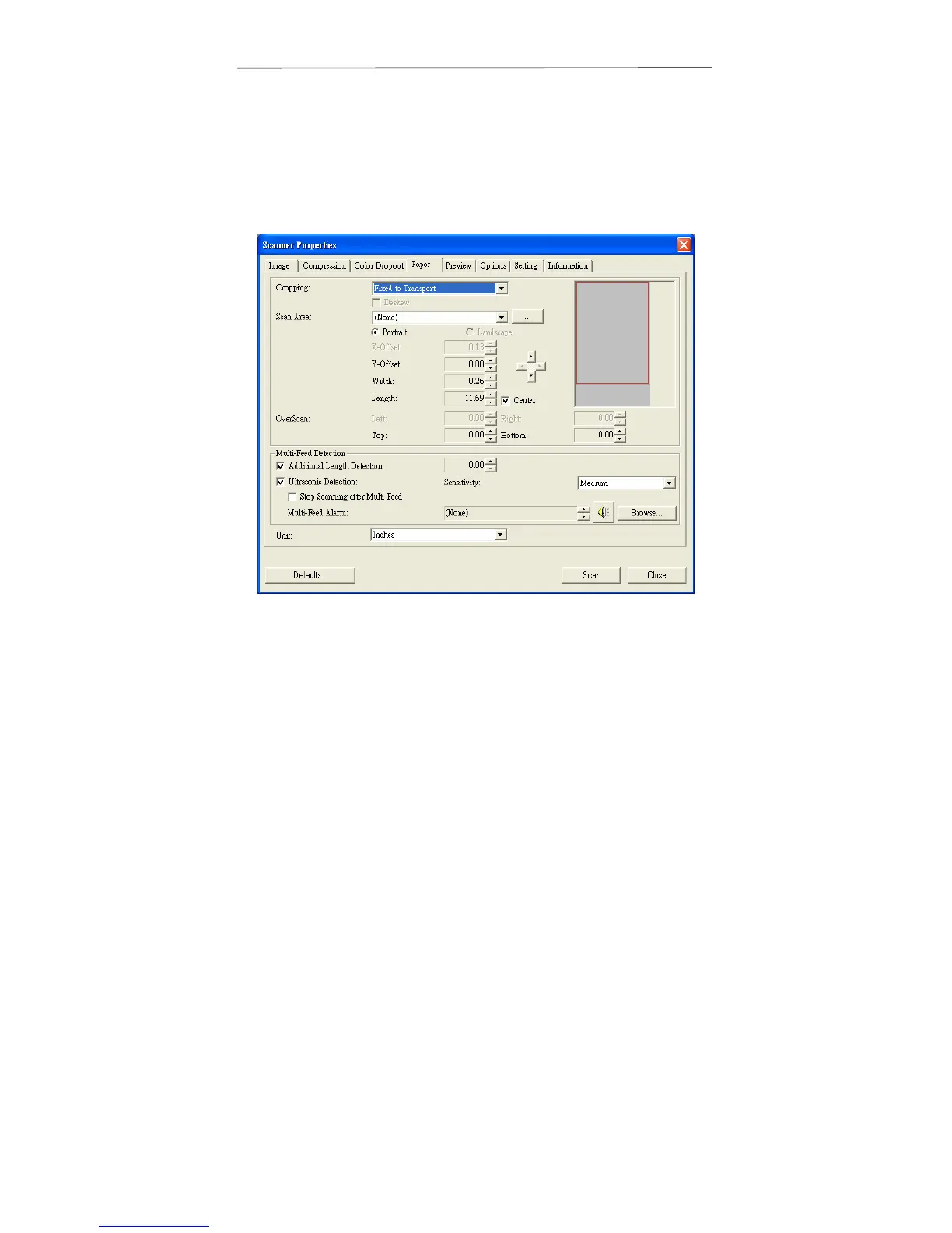 output (i.e., Auto Crop or not, Scan Area, OverScan, Multi-Feed