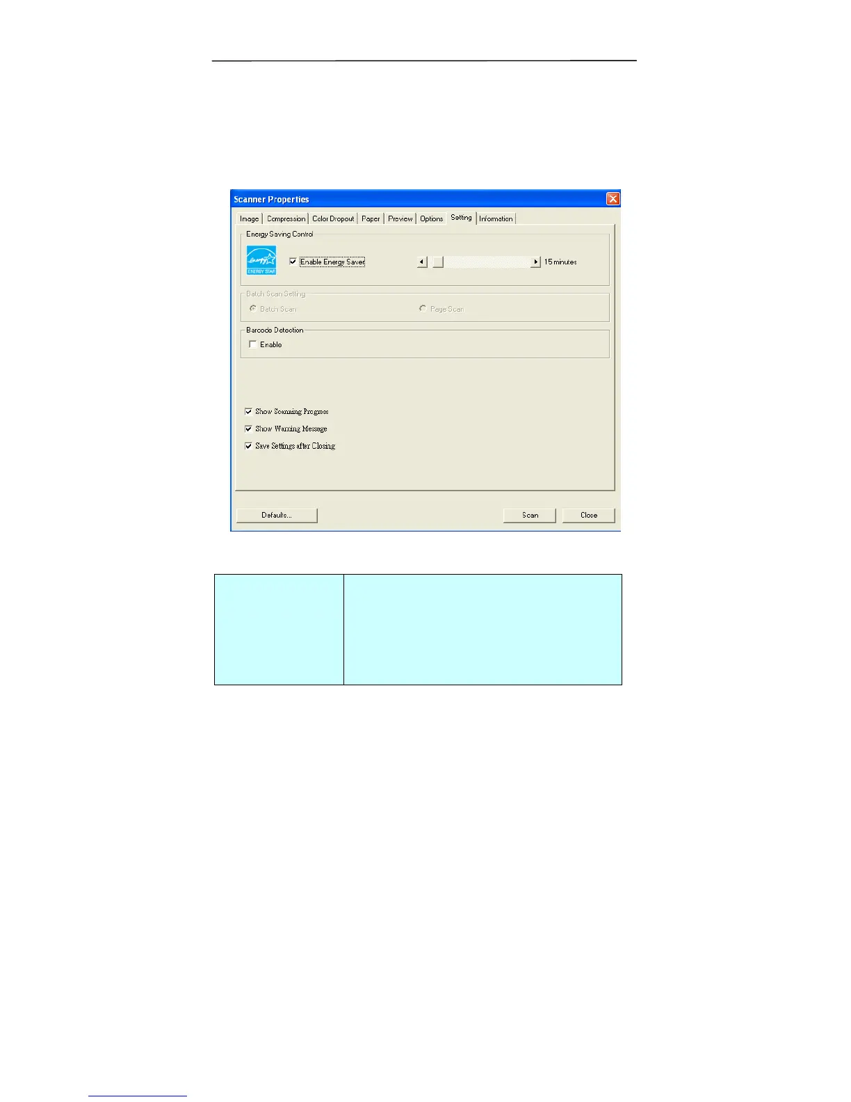The Setting tab dialog box