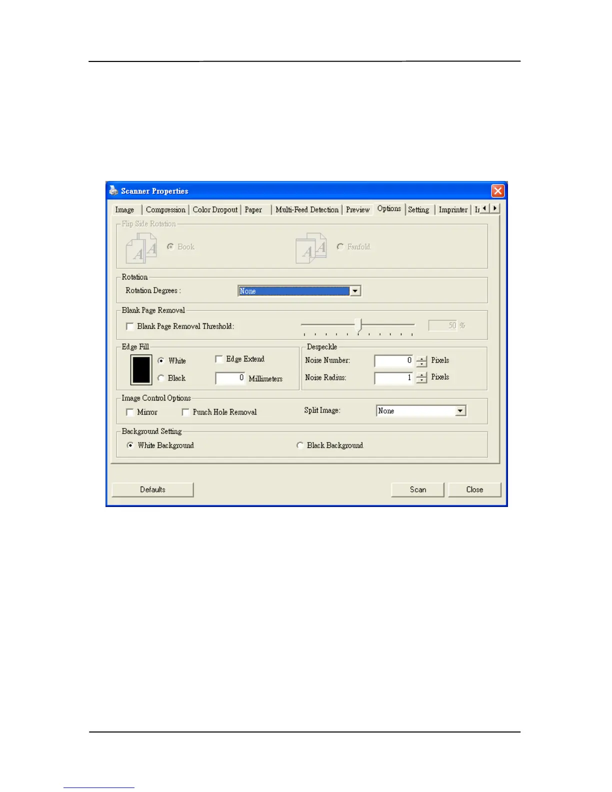Avision FF-1105B - The Options Tab