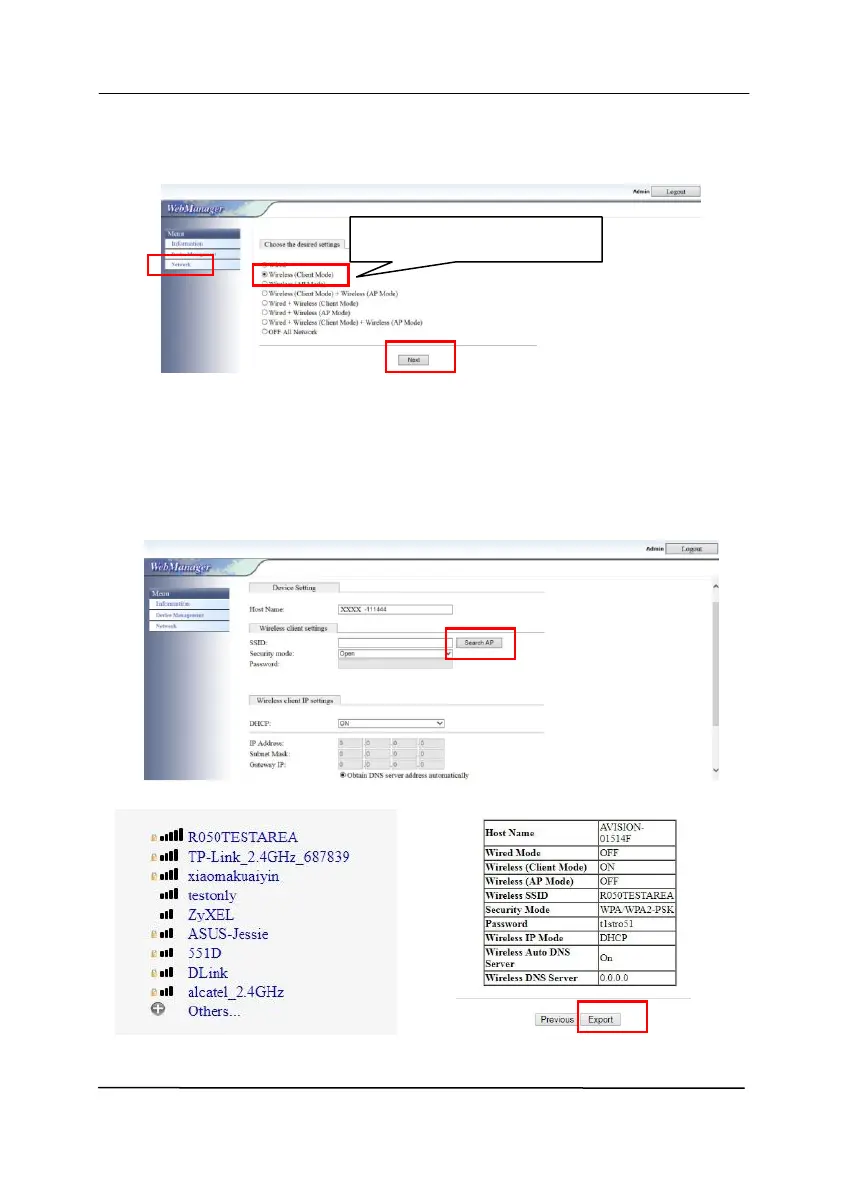 5. Select [Network]>[Wireless (Client Mode)] and then