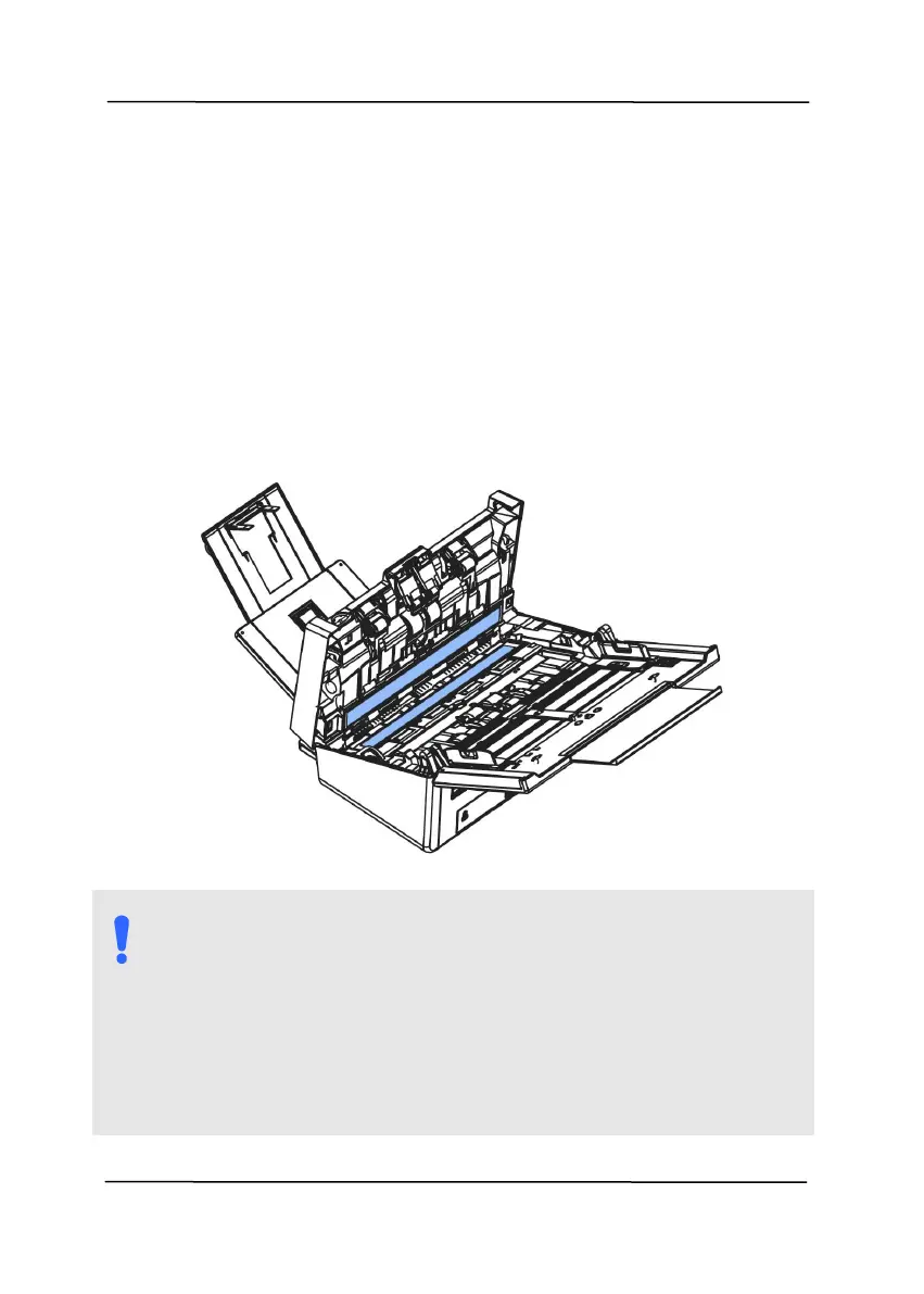 Do not clean the inside of the scanner with water or a