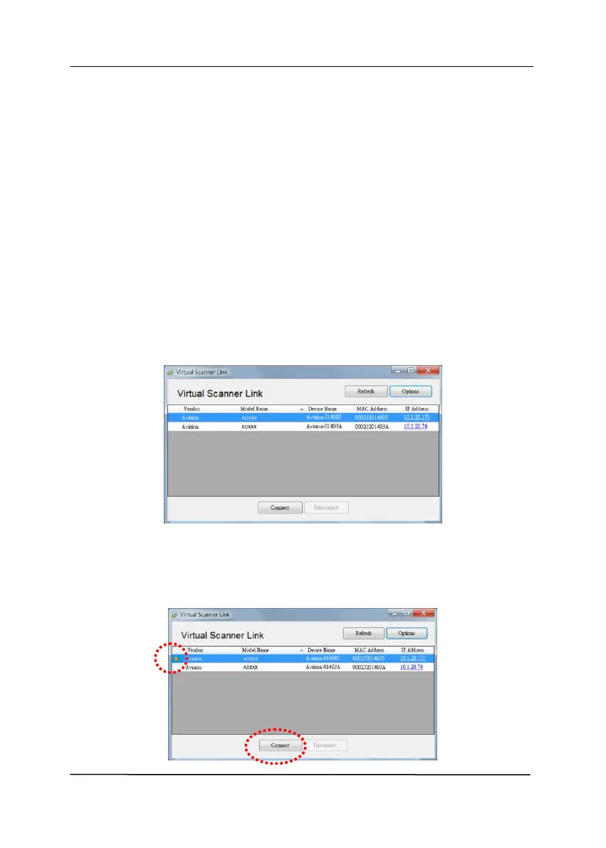 2. Choose the scanner you wish to connect and then press