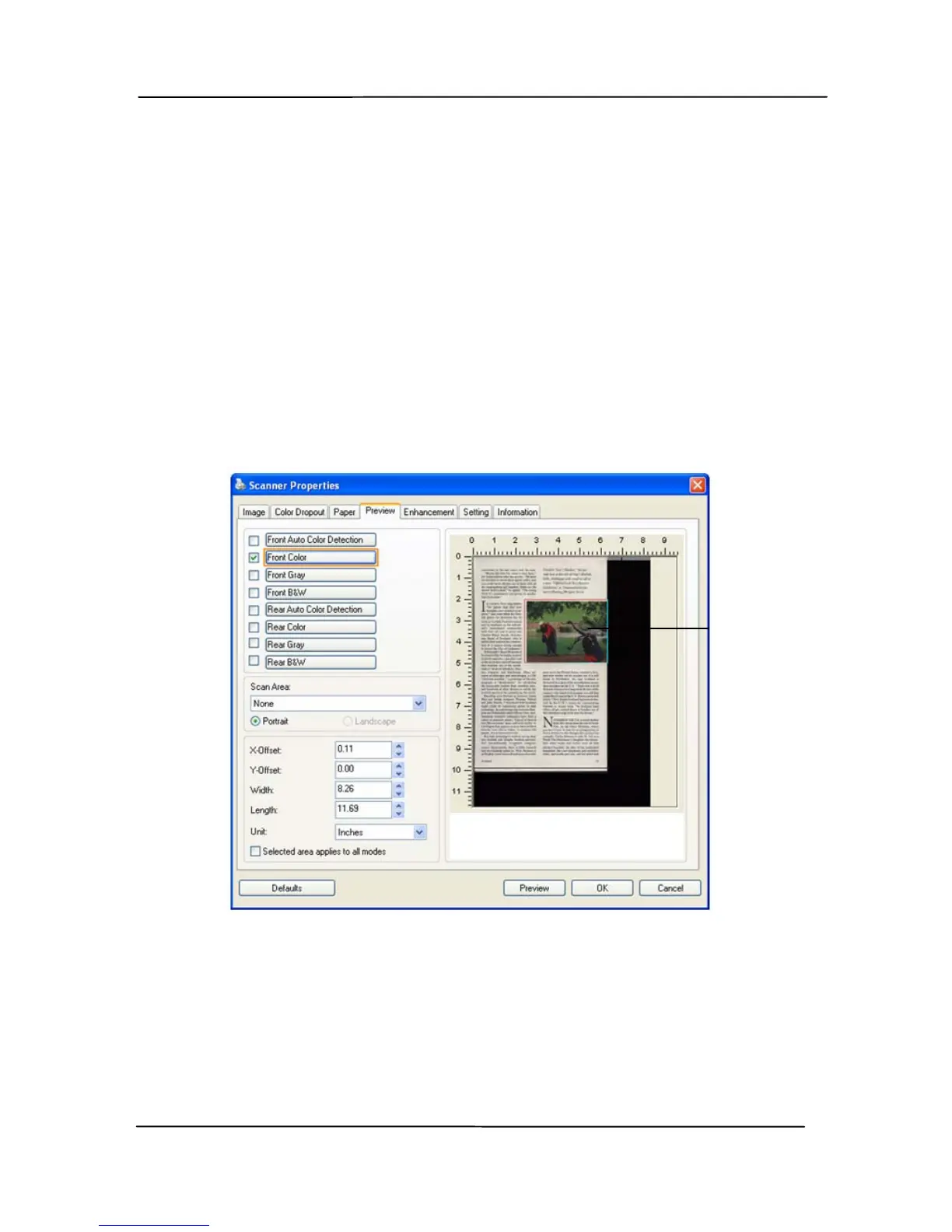 The Preview tab allows you to preview (a low-resolution scan)