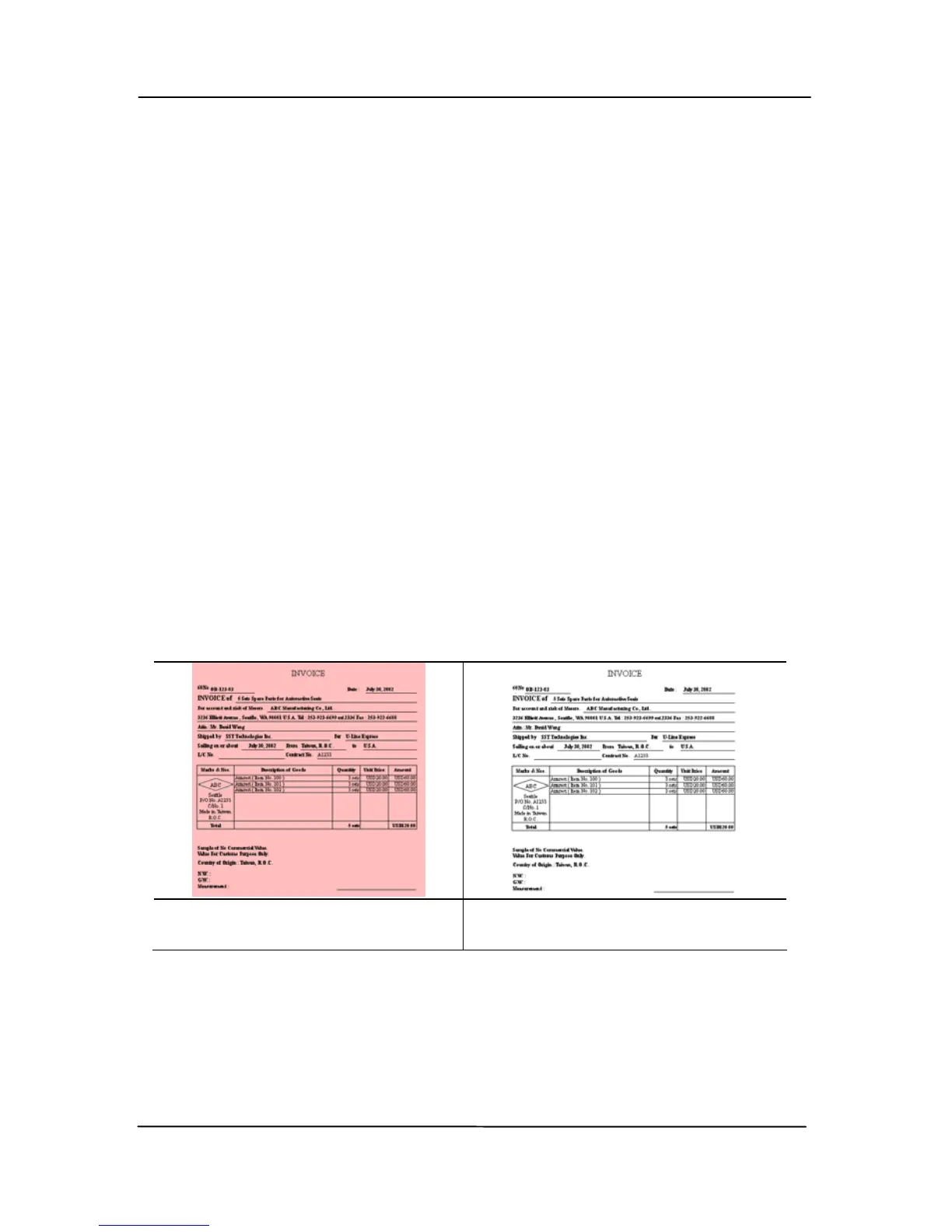 Color. For paper with background color such as invoices,