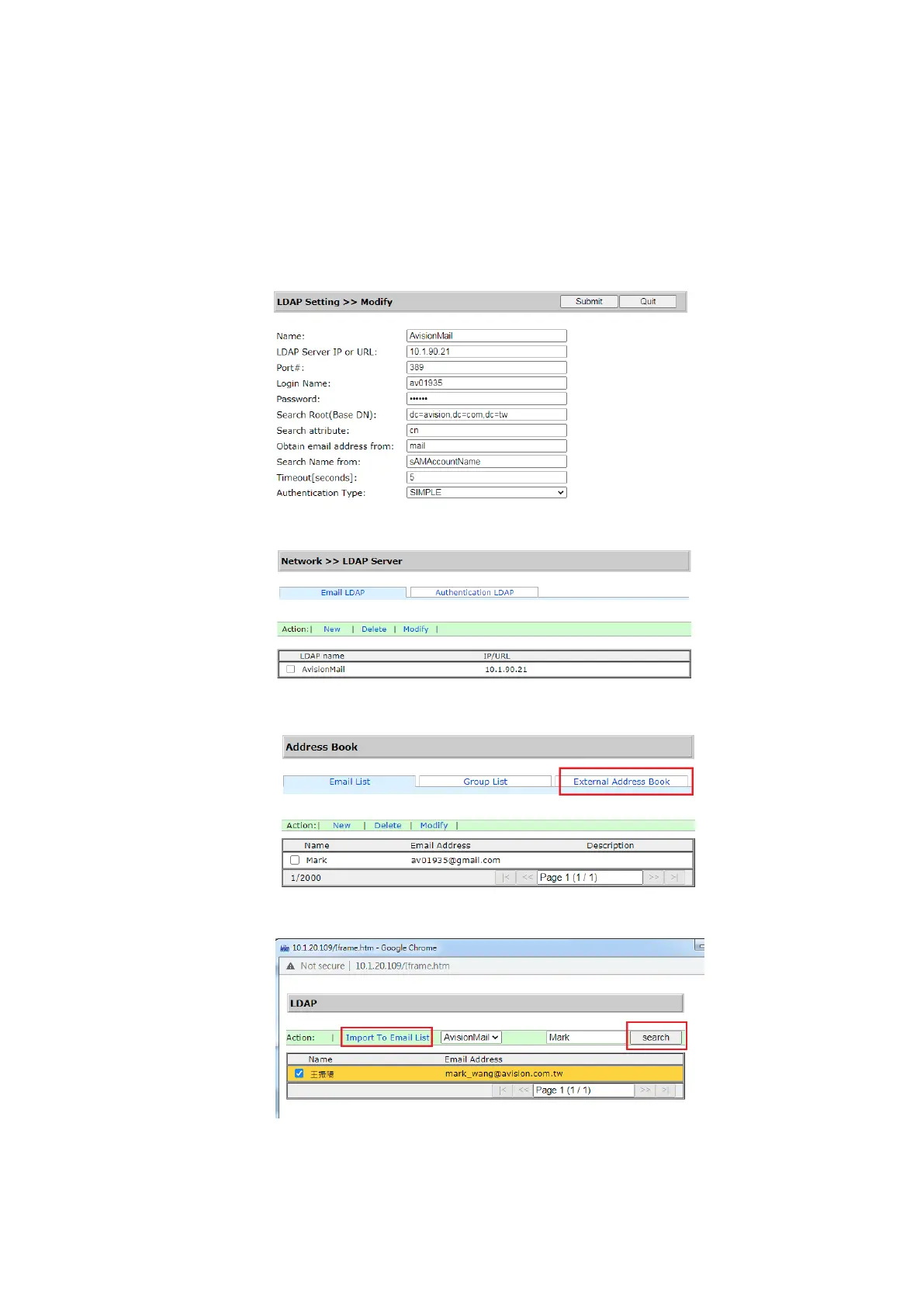 To import email address from LDAP Mail Server:
