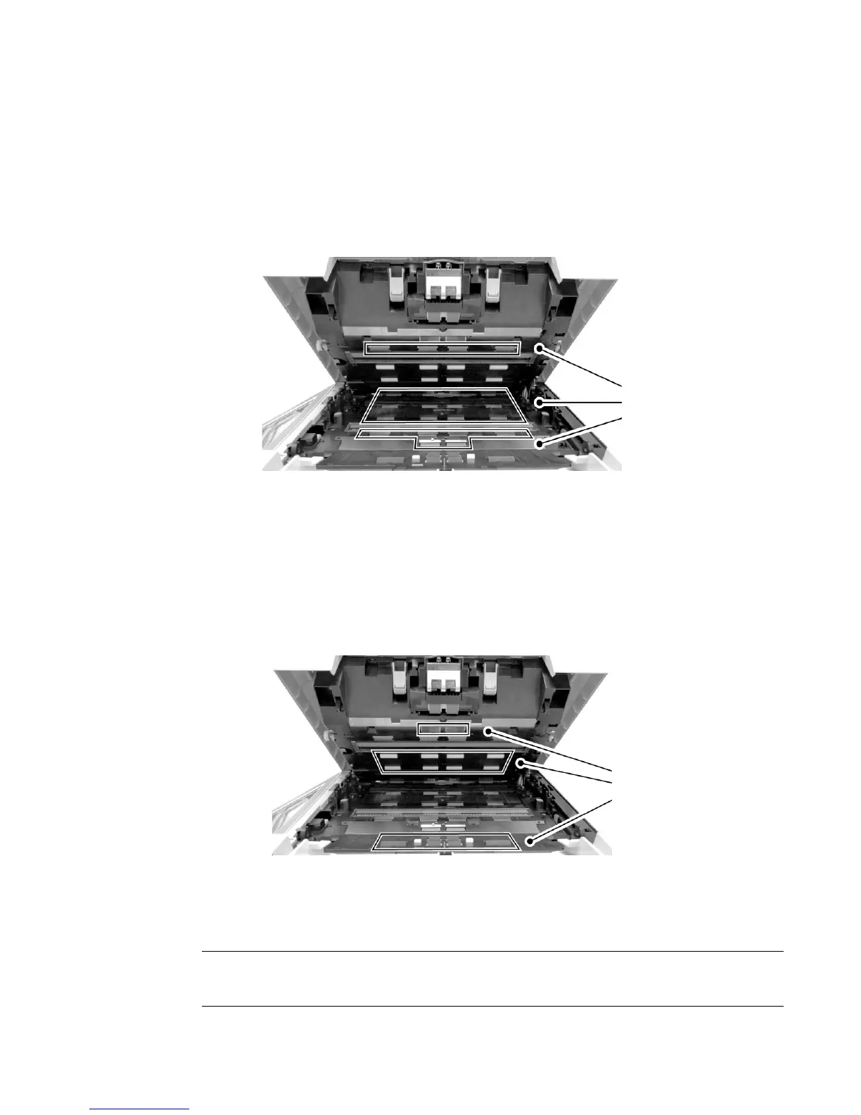 to snag or damage the hopper tray sensor while cleaning the pickup rollers.
