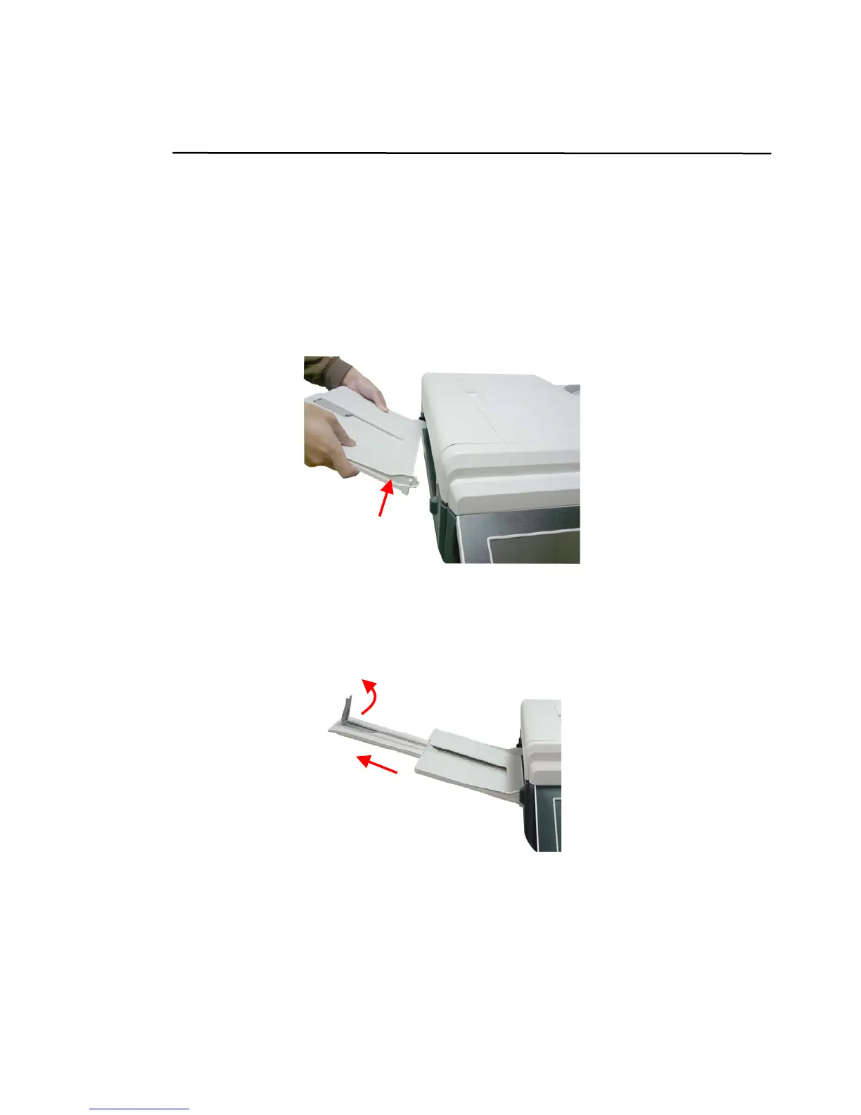 3. Pull out the Stacker Extension to the length of the document (3), and raise the